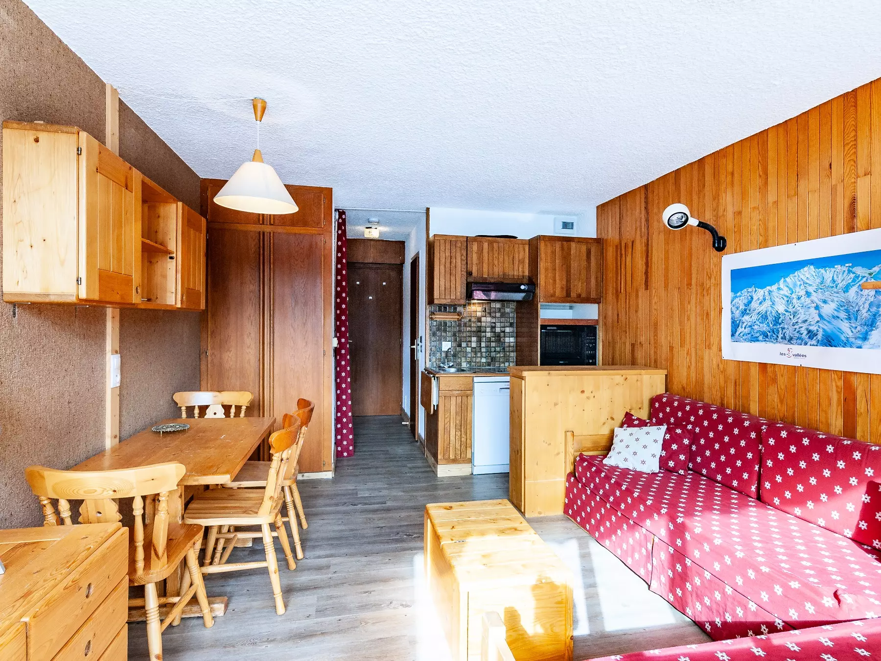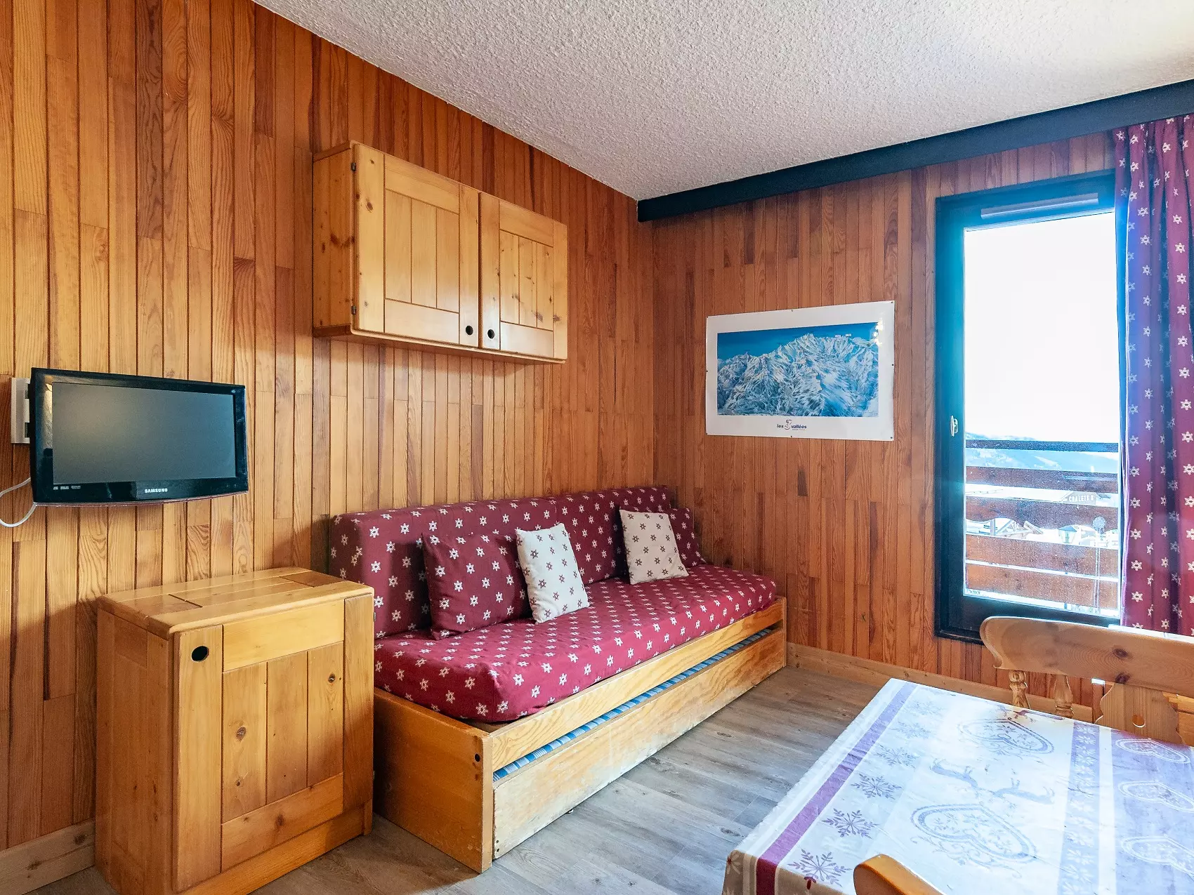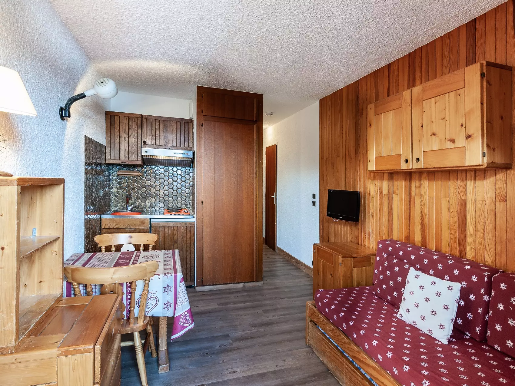 L'appartement Ruitor 113 d'une superficie de 28m2 est exposé Nord avec une belle vue sur la vallée.