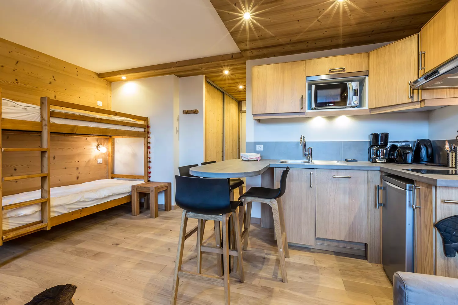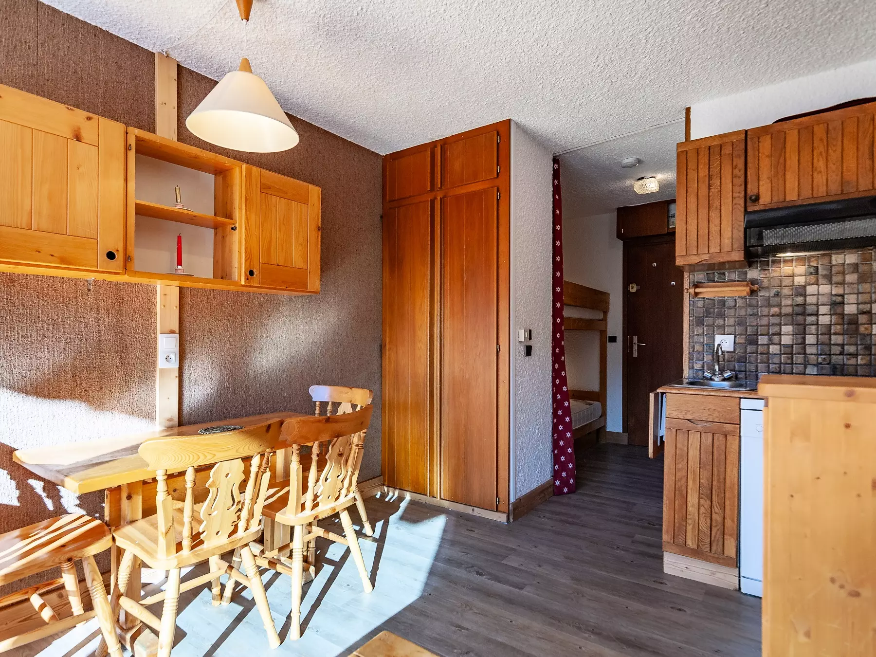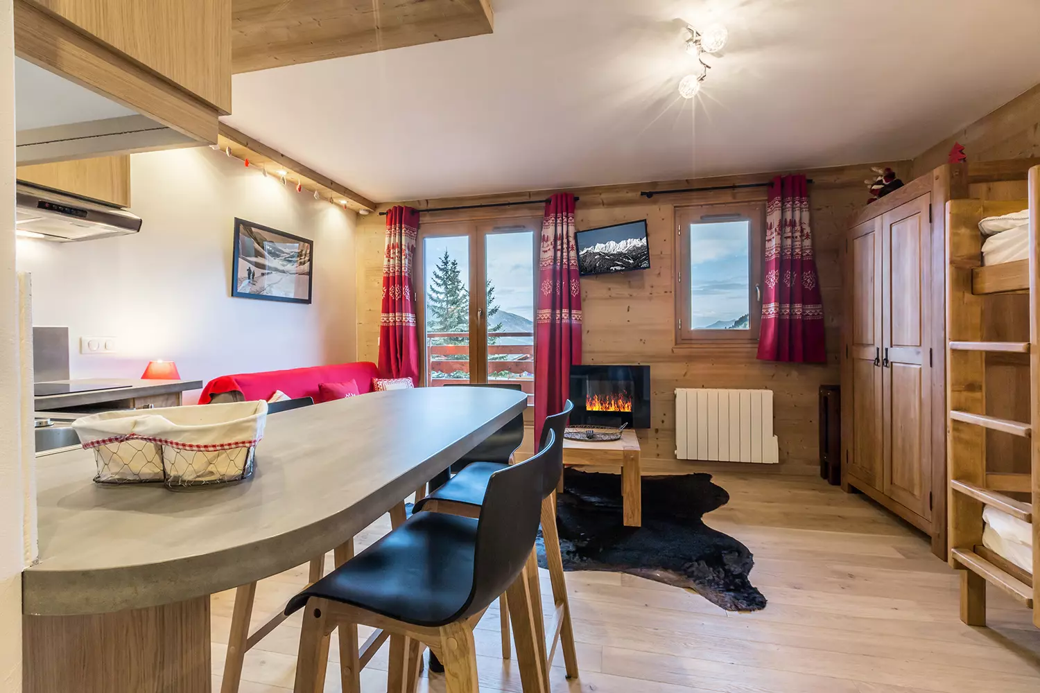 L'appartement Ruitor 103 d'une surface de 24m² est exposé Sud avec une vue sur le Mont Vallon.
