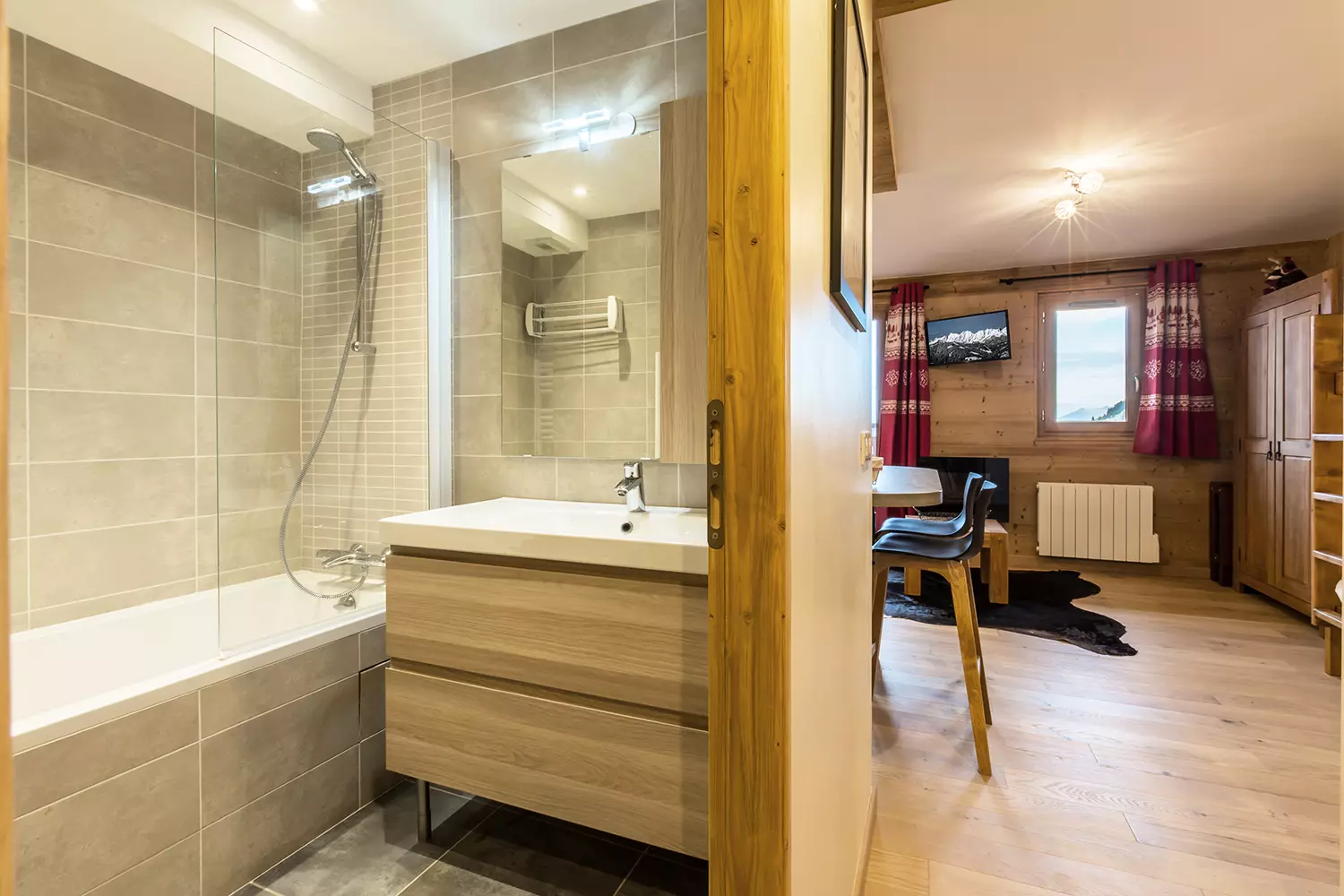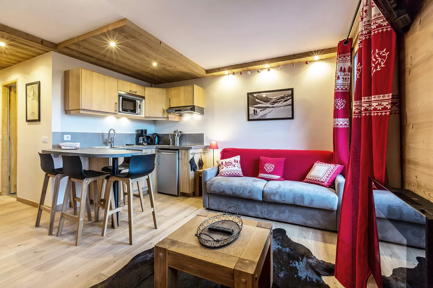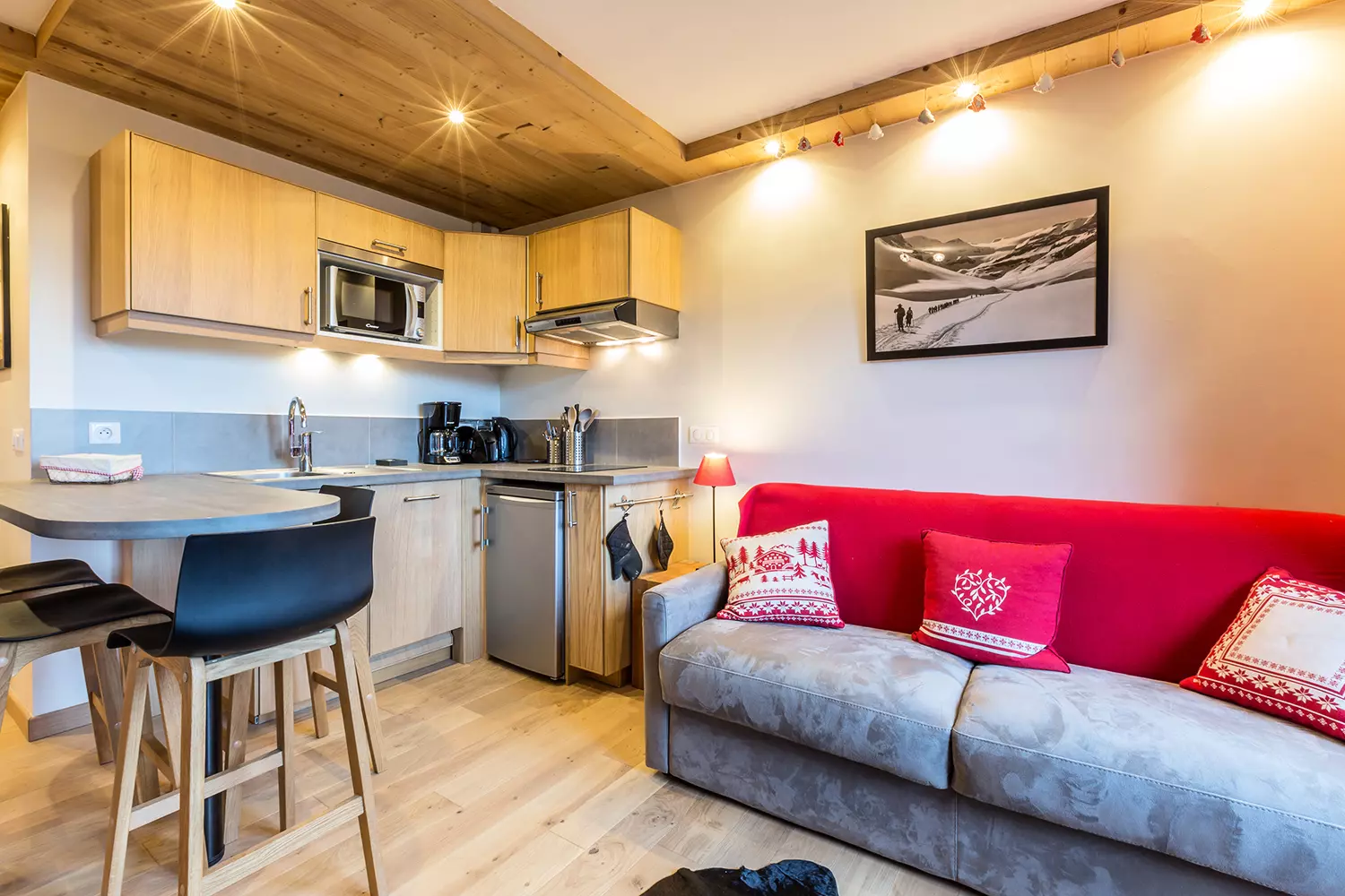 L'appartement Ruitor 103 d'une surface de 24m² est exposé Sud avec une vue sur le Mont Vallon.