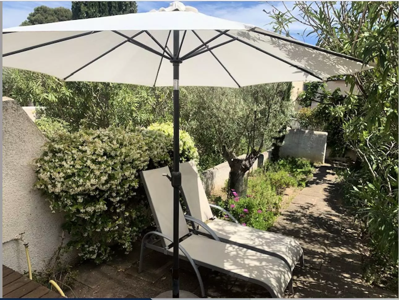 Les avantages de cette location à la mer : terrasse et jardinet arboré et clôturé