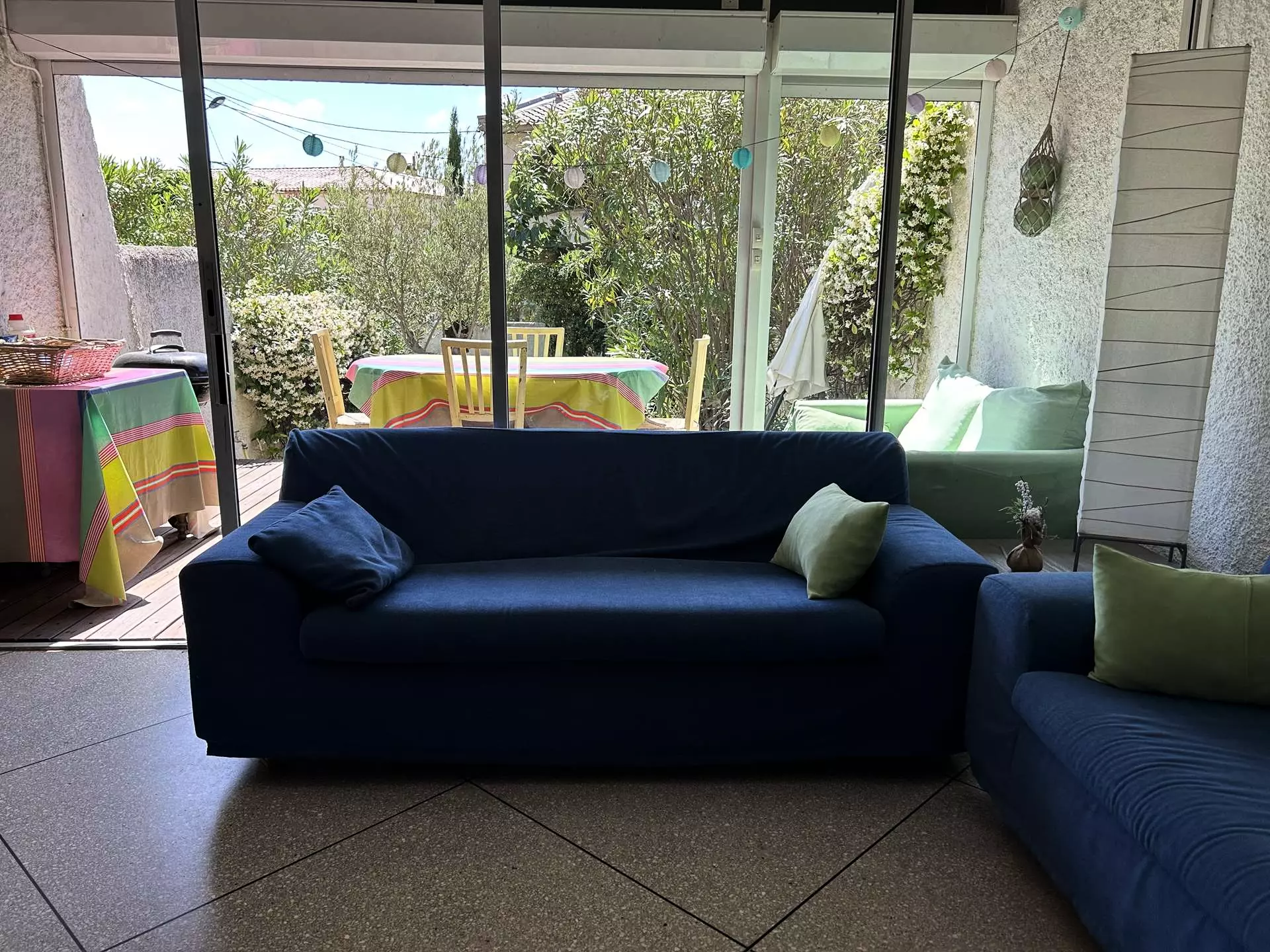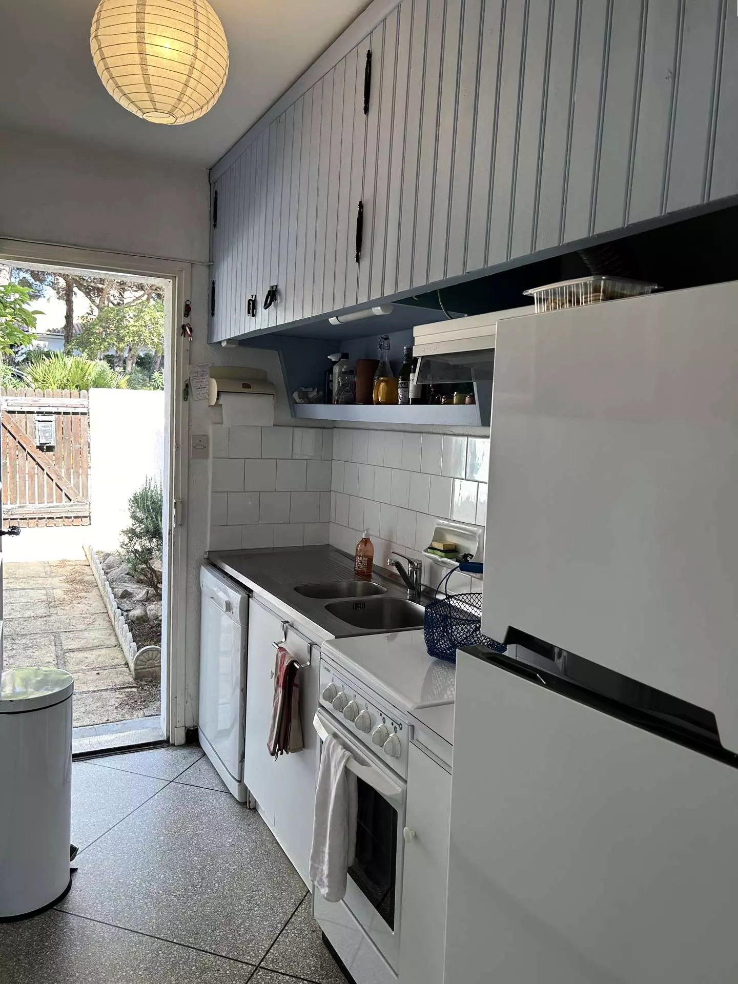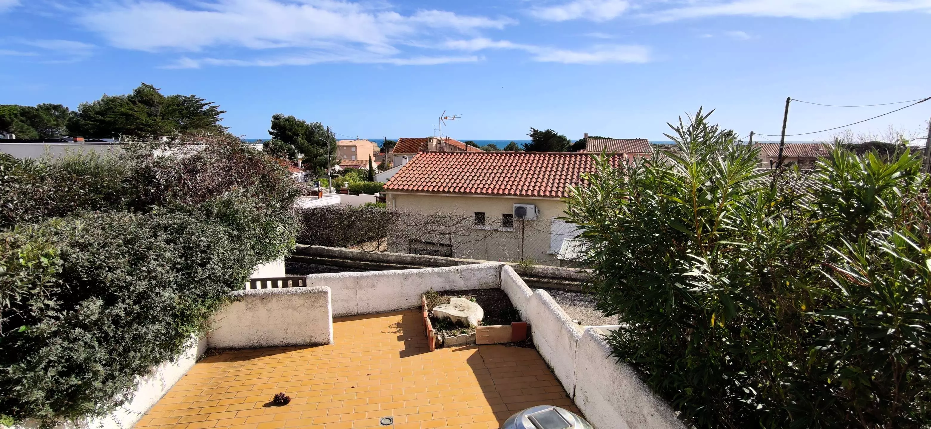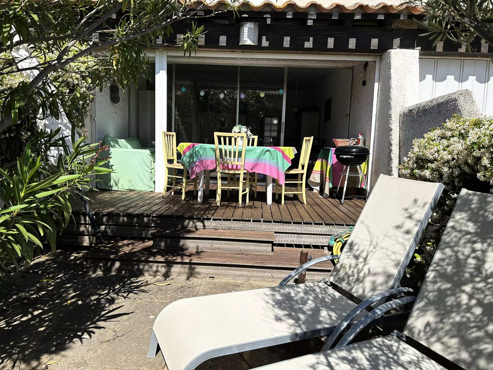Les avantages de cette location à la mer : double terrasse cloturée, barbecue , espace repas en extérieur