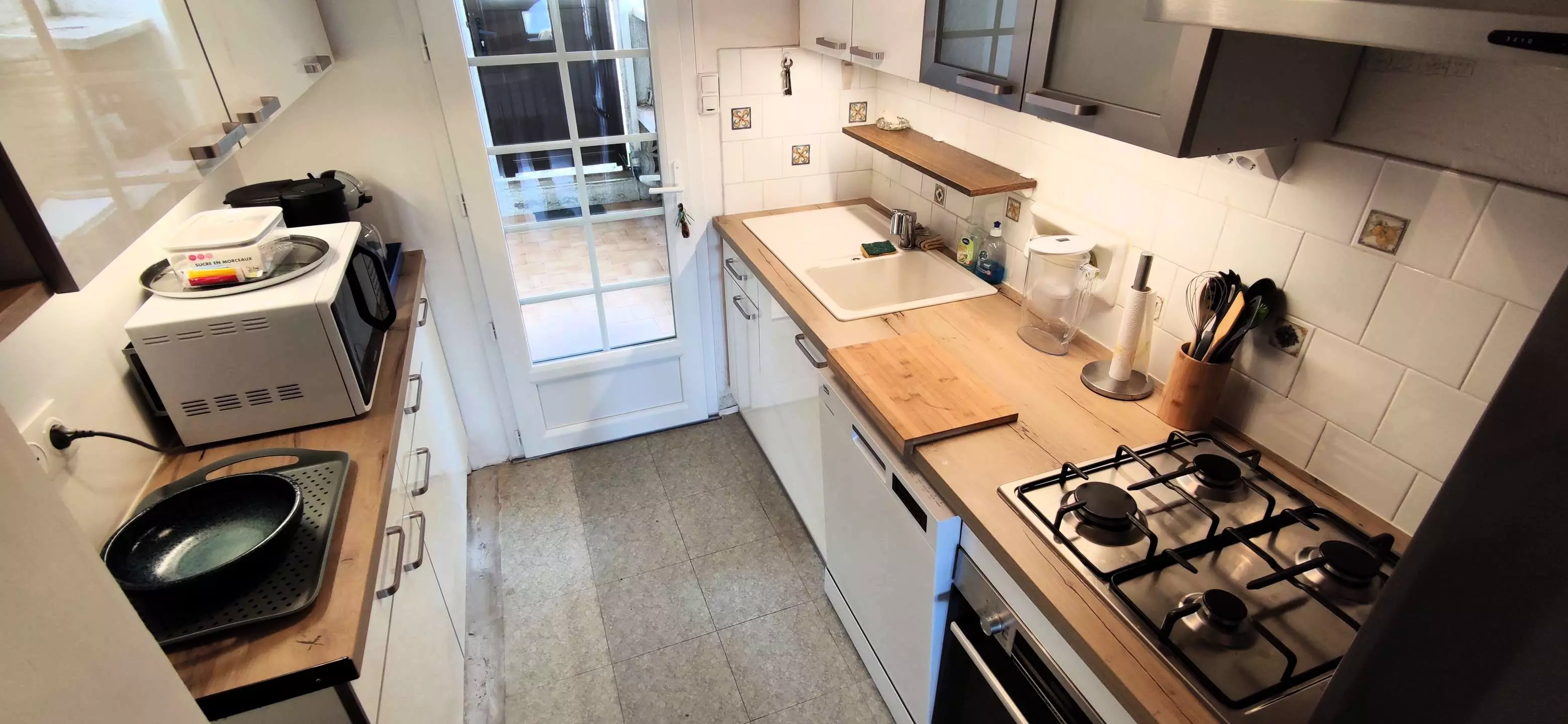 Les avantages de cette location à la mer : terrasse et jardinet arboré et cloturé Prestations incluses : Menage fin de séjour T4 Prestations disponibles : Linge de toilette : 8.9 Location draps grand lit : 16.9 Location draps petit lit : 14.9 Tapis de bain + torchons : 4.9