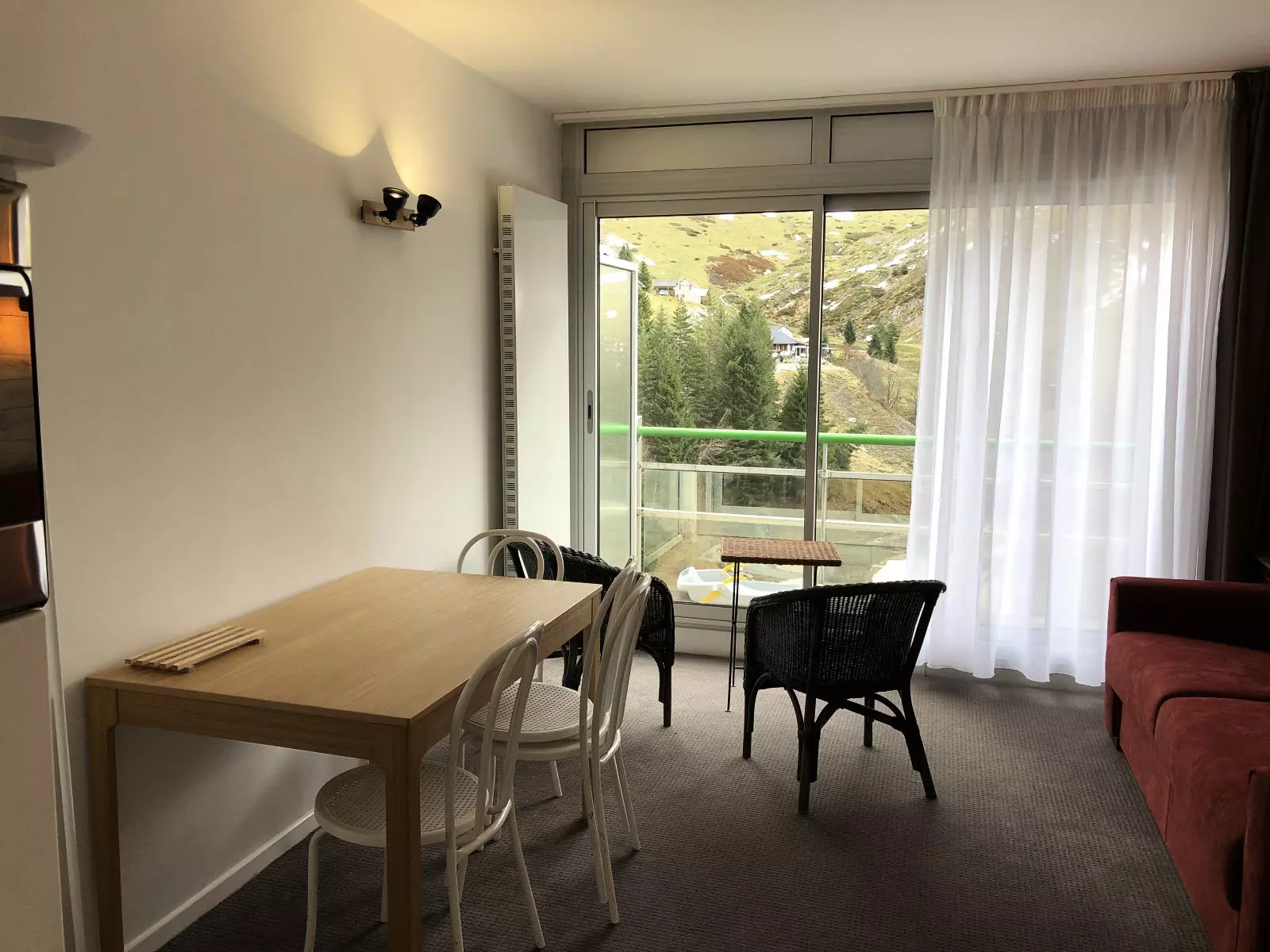 Studio équipé et meublé pour 6 pers, 7°étage, vue montagne, 28m² , expo est, terrasse, chauffage collectif. Entrée alcôve 2*2 lits sup. 90, sdb lavabo, baignoire et WC indépendants. Séjour canapé lit 2 pl, TV. cuisine: plaque vitro 4 feux, Four, frigo avec bac conservateur, lave-vaisselle, cafetière électrique, grille pain.