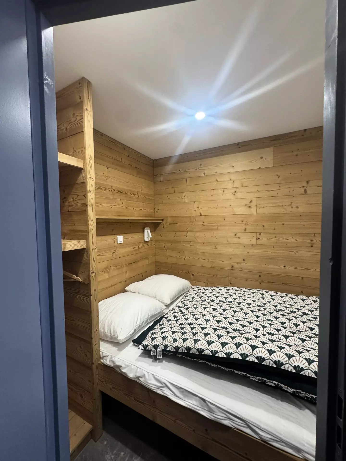 Il est équipé d'un lit gigogne dans le séjour, deux lits superposés dans le couloir, et un coin nuit avec deux lits superposés.