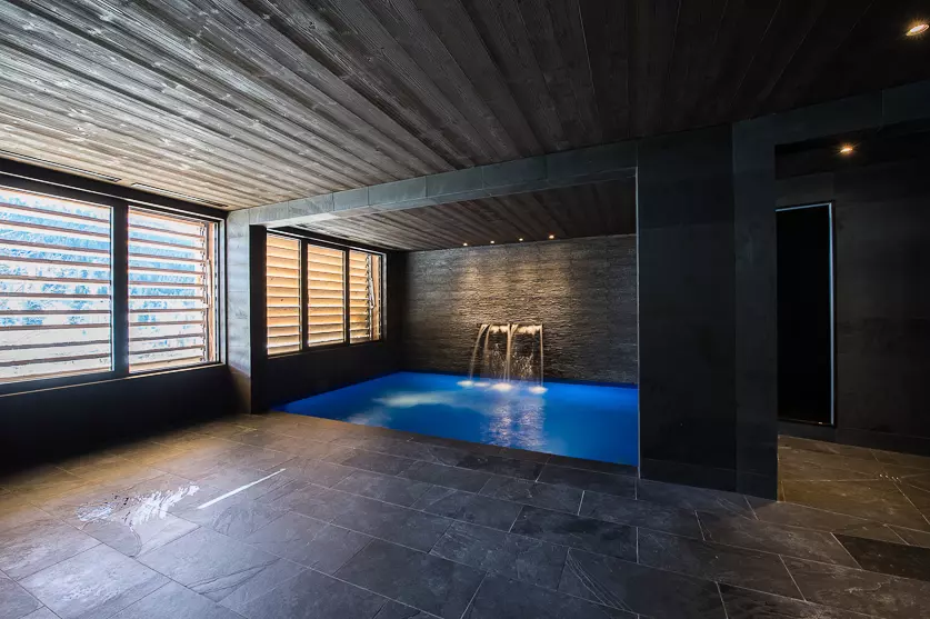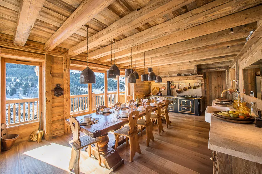Chalet de prestige de 650m². Décoration authentique et chaleureuse. 4 Chambres double pour adultes et 2 chambres enfants avec lchacun 2 lits superposés. Espace détente, spa de nage, hammam et salon TV pour se relaxer après une longue journée au ski. Petit déjeuner inclus.