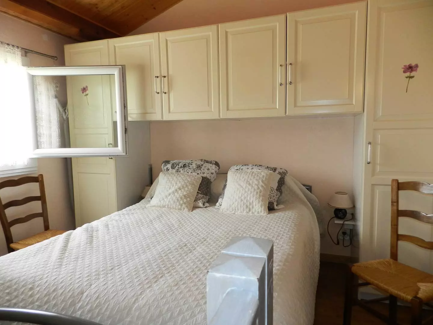 Ce mazet en duplex vous propose au niveau rez de jardin une terrasse ensoleillée, un séjour une cuisine équipée, une douche, un wc indépendant, et à l'étage une chambre climatisée avec lit double et une autre chambre avec lit double.