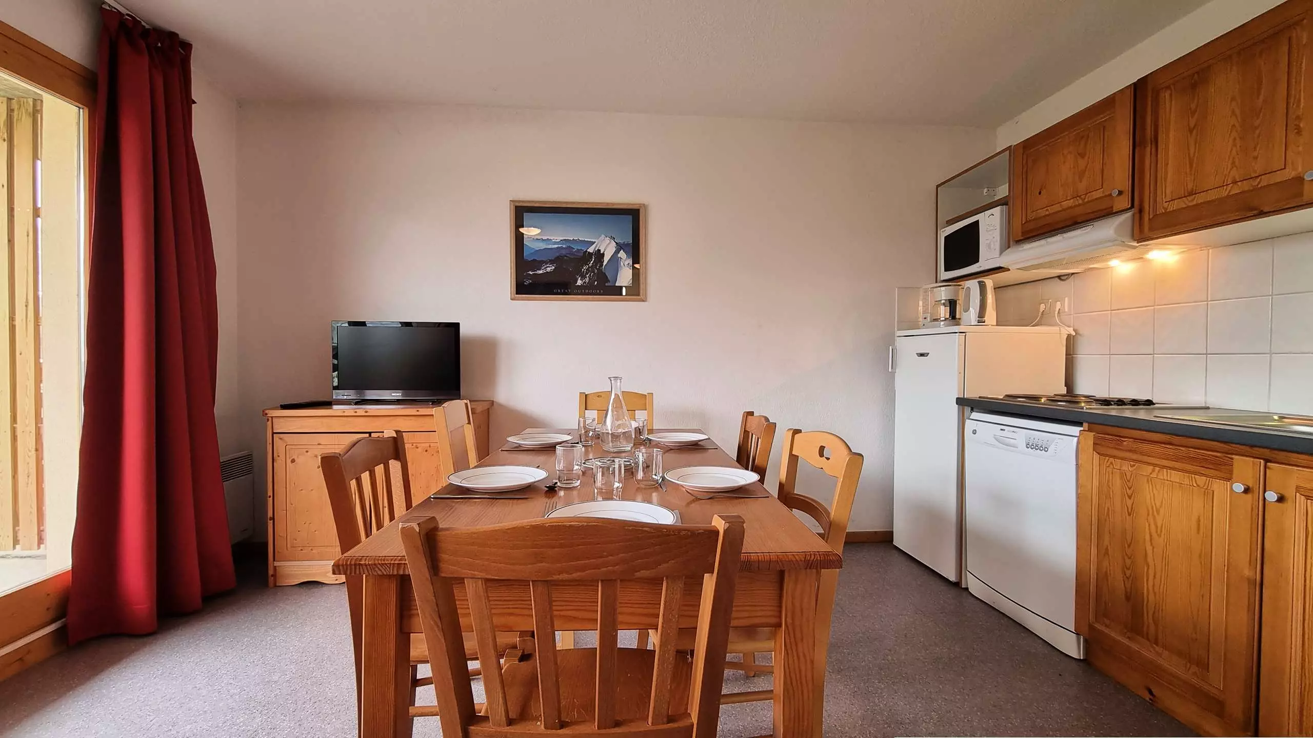 Il se compose d'une entrée où se trouve le coin montagne ouvert avec lits superposés, d'une chambre avec un lit double, d'une salle de bains avec baignoire et lavabo, wc séparés, ainsi que la pièce à vivre.