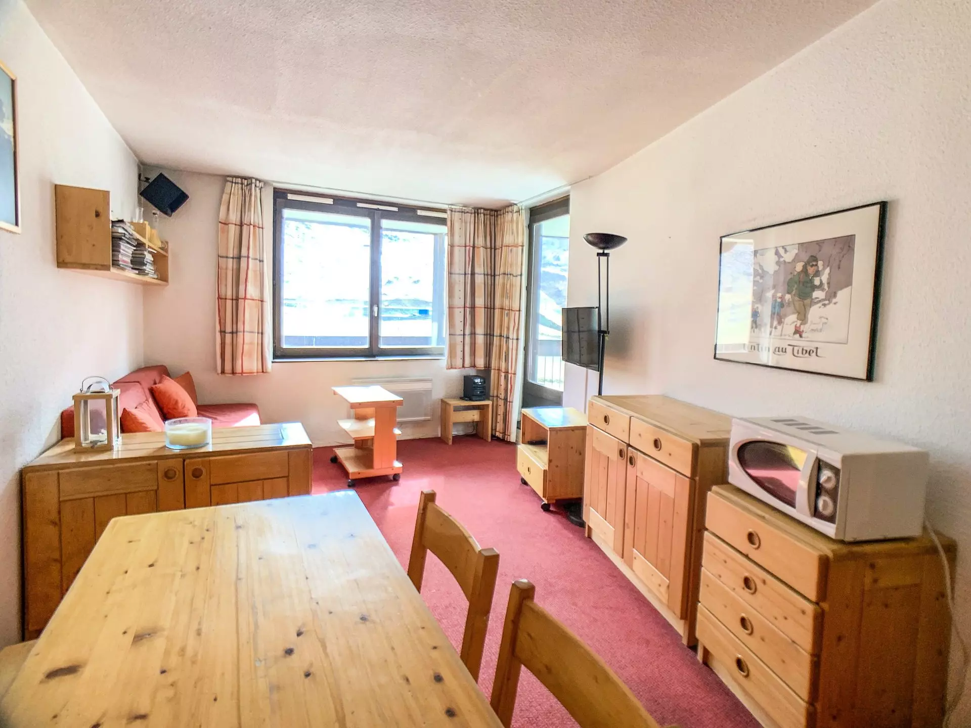 Studio cabine de 23m², équipé pour 4 personnes et situé au 6ème étage avec ascenseur de la Résidence "Les Tommeuses", à Tignes Val Claret. Au pied des pistes, en face du jardin d'enfants ESF.