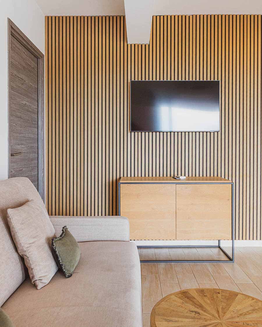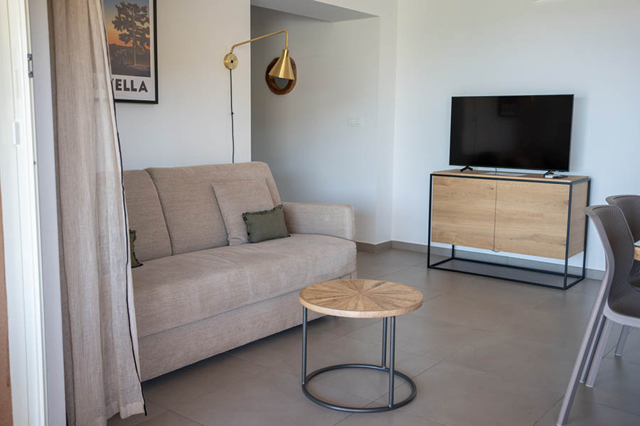 Les appartements "Conforts" (environ 43 m²), idéal pour 1 à 4 hôtes, combinent chambre indépendante avec lit Queen size (160x200cm), séjour fonctionnel avec canapé convertible et terrasse privative avec vue sur la mer. Ils constituent une option pratique pour un court ou moyen séjour alliant autonomie et confort.