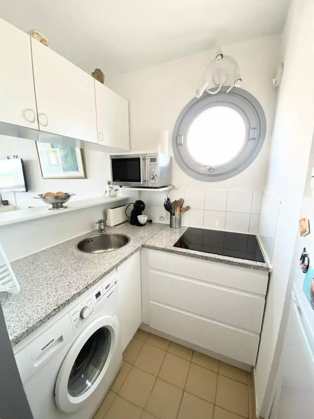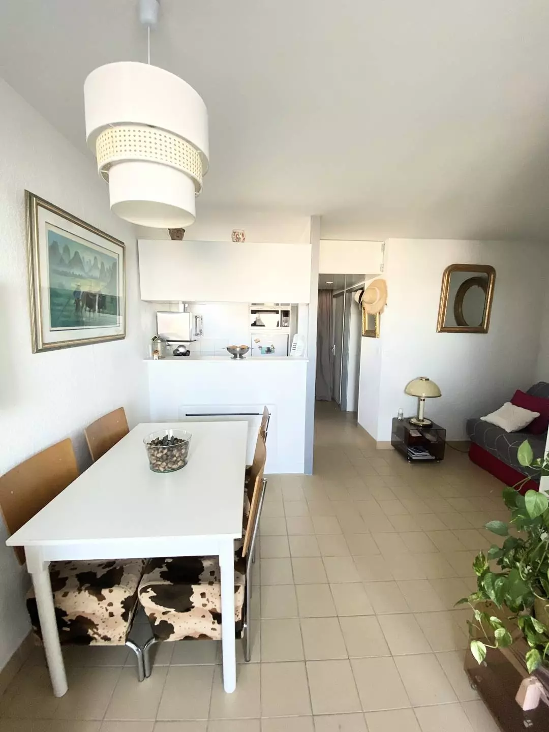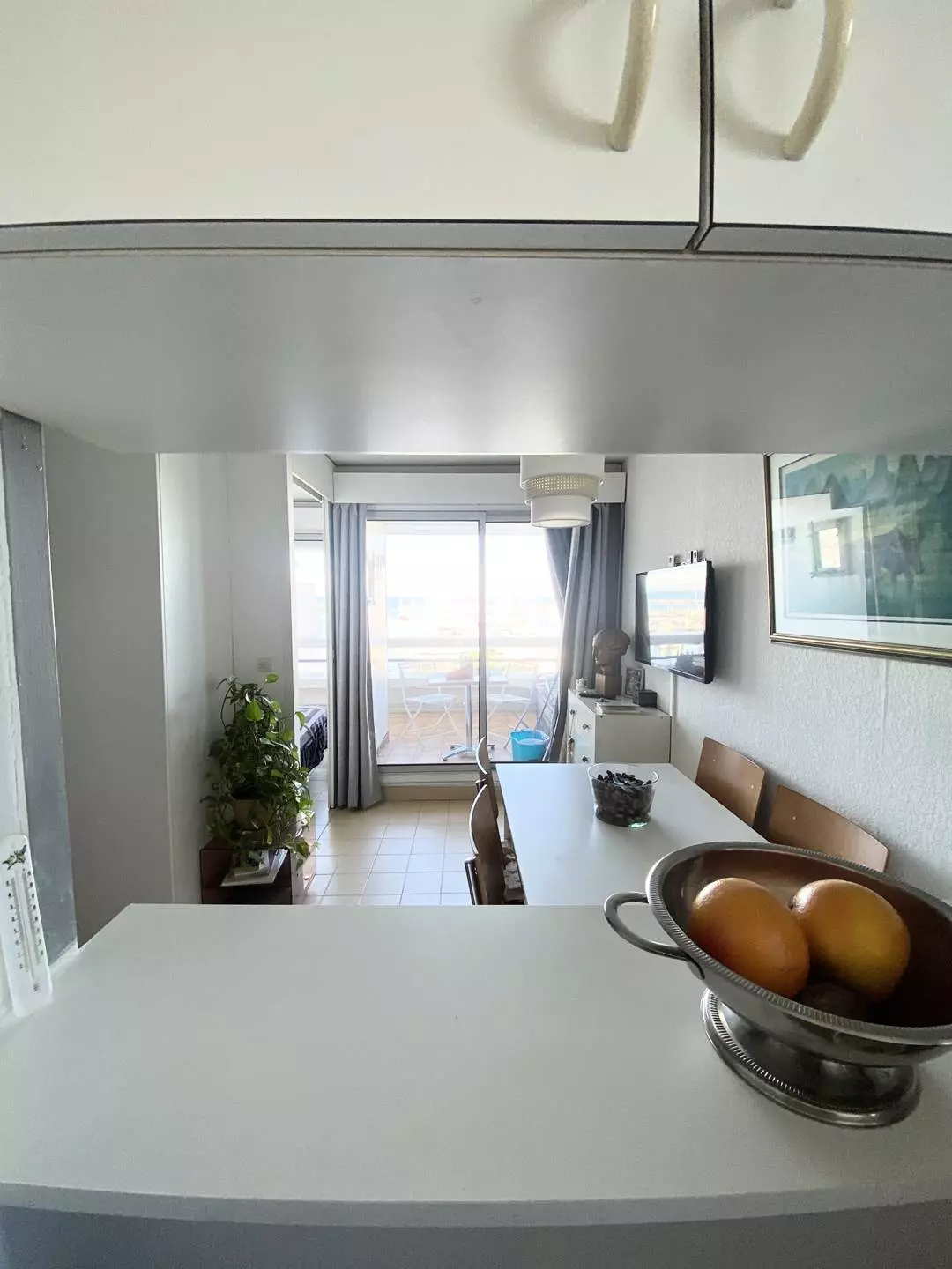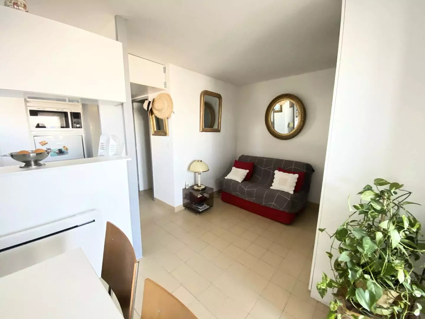 P2 de 30m² spacieux et lumineux composé d'un séjour avec canapé 1 couchage, TV. Cuisine équipée (Frigo/congélateur, micro-ondes, plaque de cuisson, four, lave-linge), une chambre avec lit double en 160 cm donnant sur une terrasse de 6m² exposée Sud/Ouest avec magnifique vue sur la mer. Une salle de bain et un wc séparé. Parking privé, sécurisé , numéroté et couvert. Équipé et meublé pour 3 personnes.
