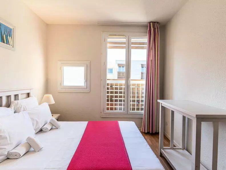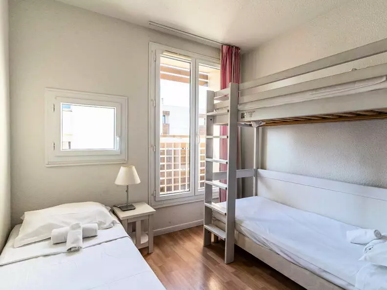 Chambre avec lit double et chambre avec lit superposé et lit simple.