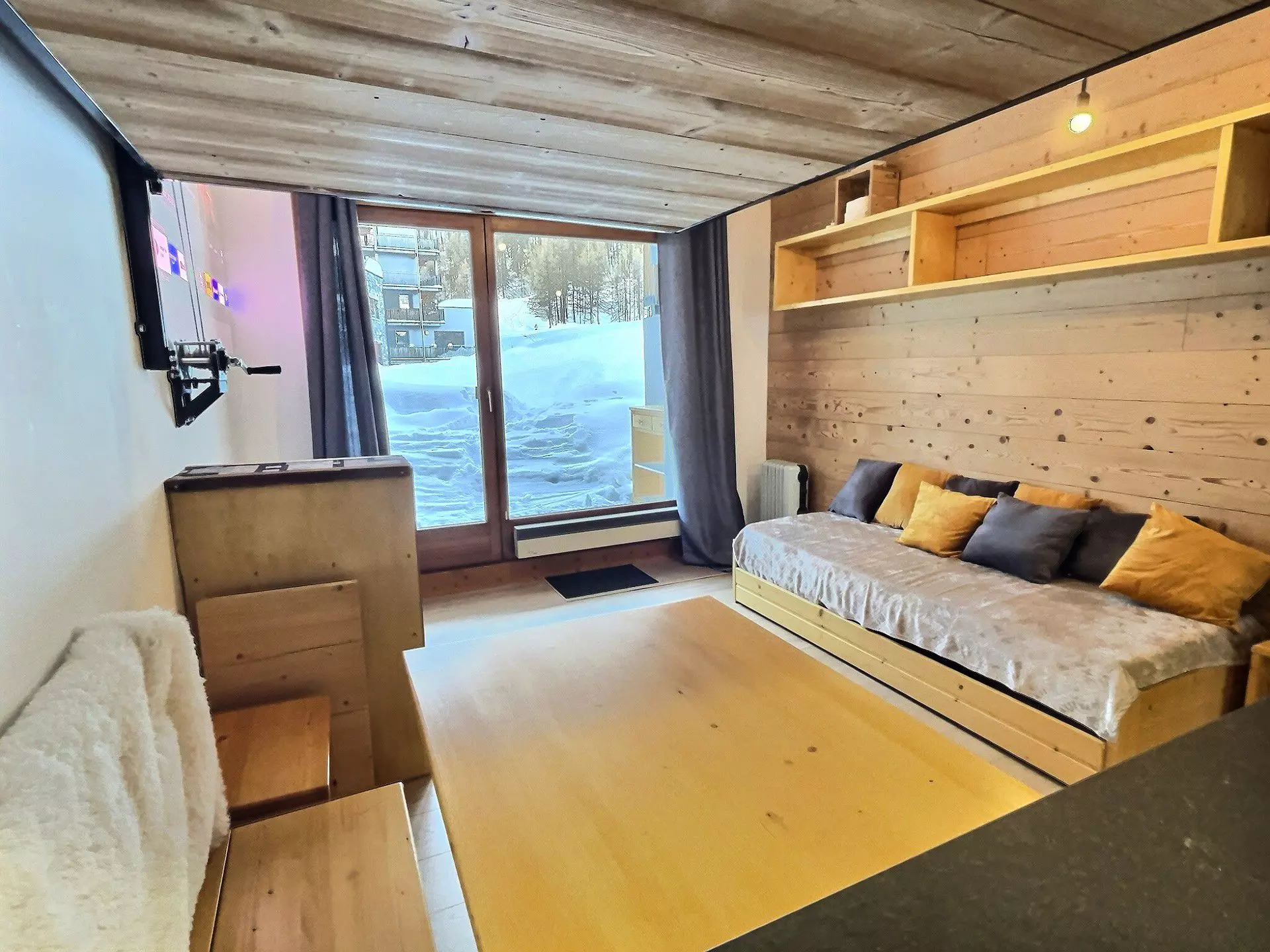 Pour votre séjour au ski ou vos vacances d'été à Val d'Isère, réservez ce studio avec coin montagne et une terrasse exposée Est avec vue sur les montagnes environnantes.