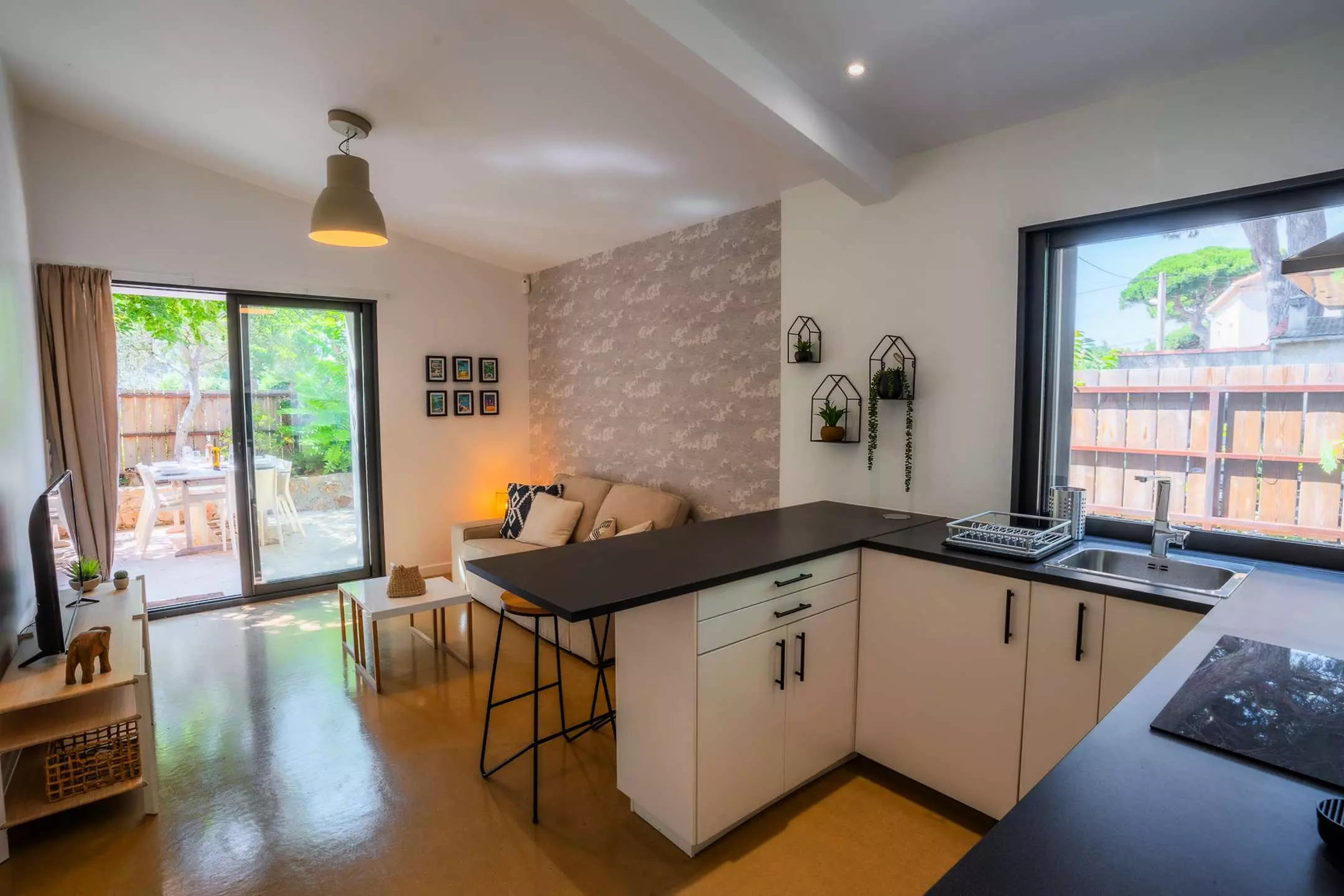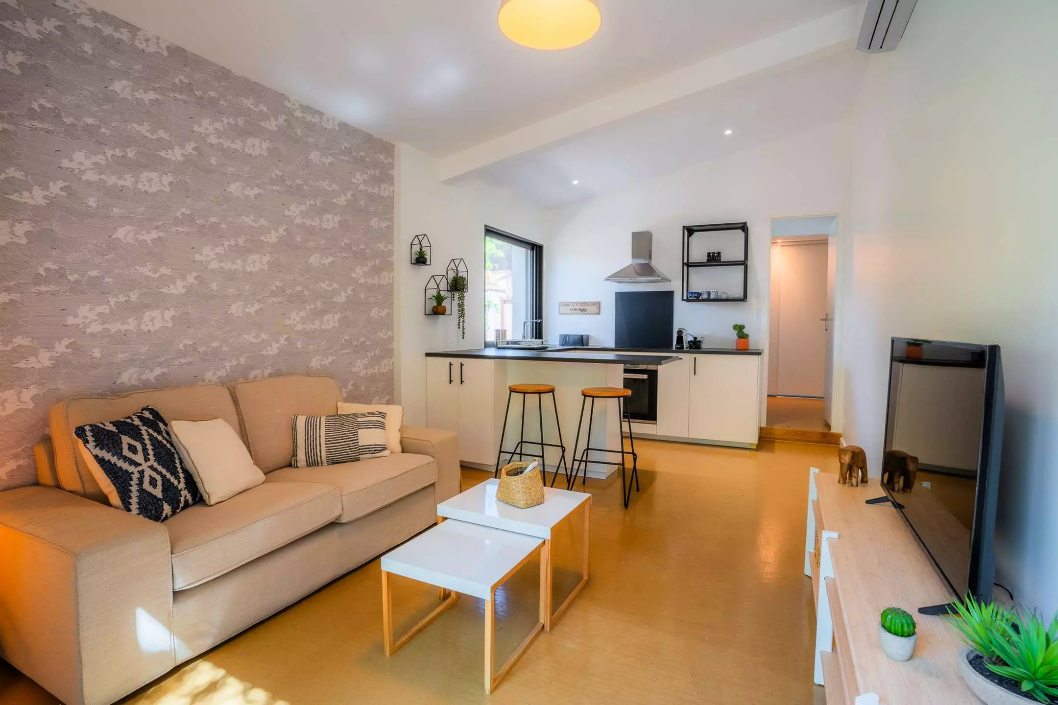 Un appartement indépendant avec séjour/salle à manger, une cuisine ouverte et équipée, une chambre avec lit Queensize (160*200 cm), une salle de douche avec Wc.