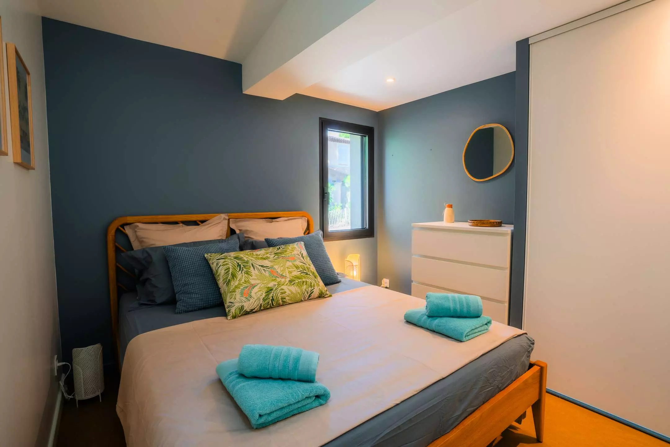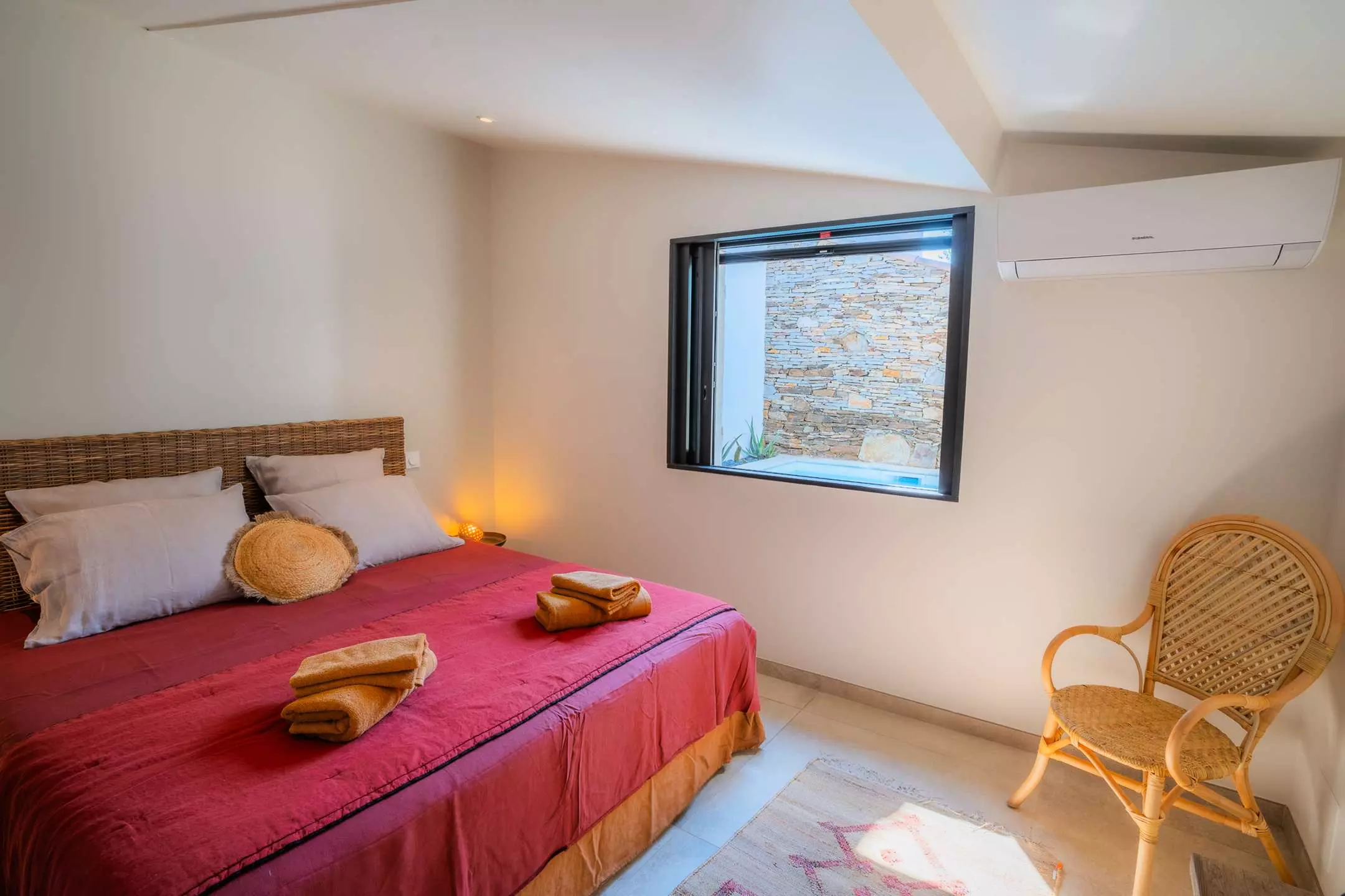 Une seconde chambre double climatisée, avec un lit Kingsize (180*200 cm), une salle d'eau avec douche le tout donnant sur le patio.