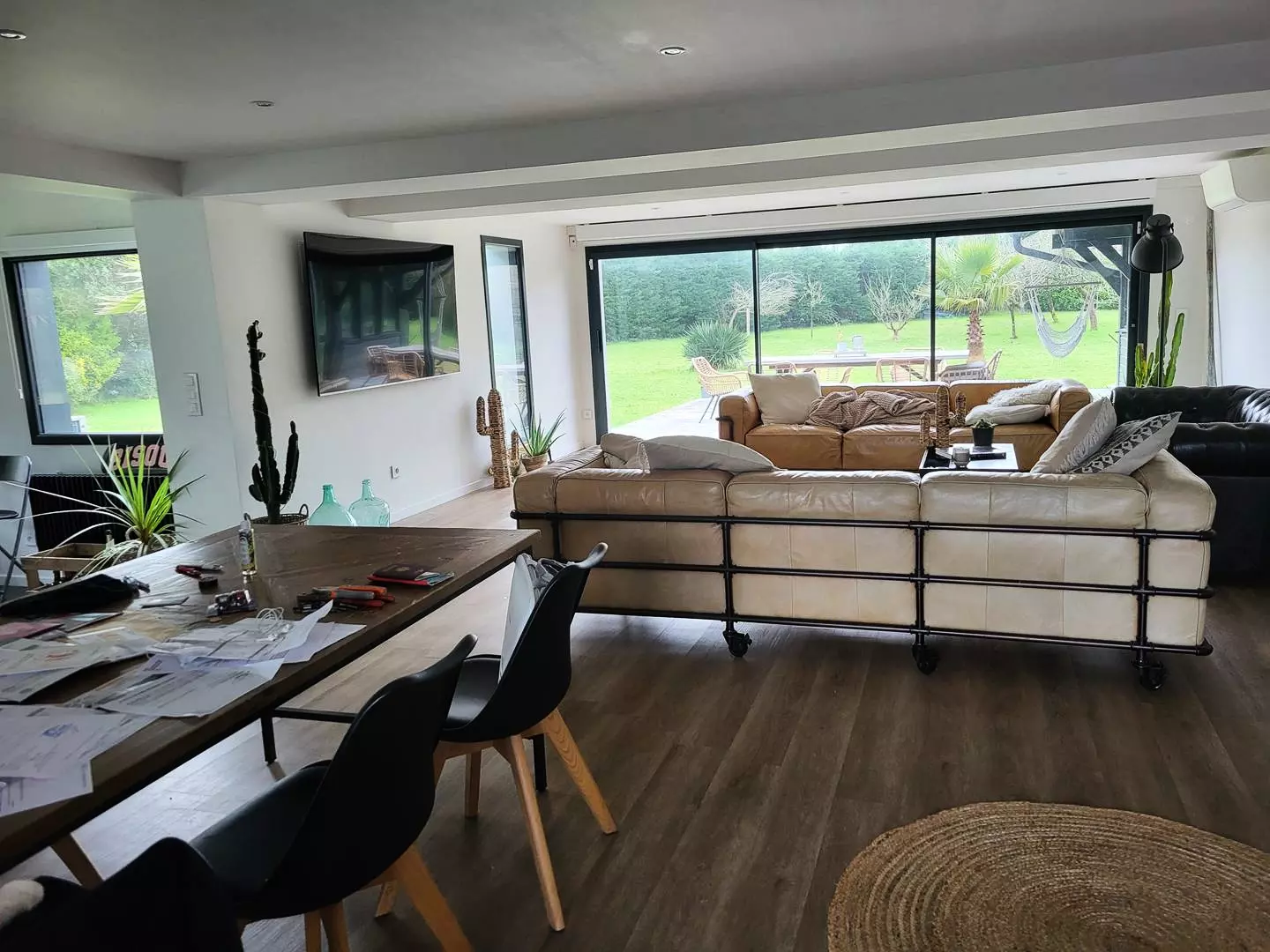 Dès votre arrivée, vous serez séduit par cette villa. L'entrée donne sur un espace spacieux comprenant une salle à manger et un salon d'environ 60m2, doté d'une climatisation réversible pour un confort optimal. Le séjour salon ouvre sur une terrasse offrant une vue imprenable sur le parc, invitant à la détente et à la convivialité.