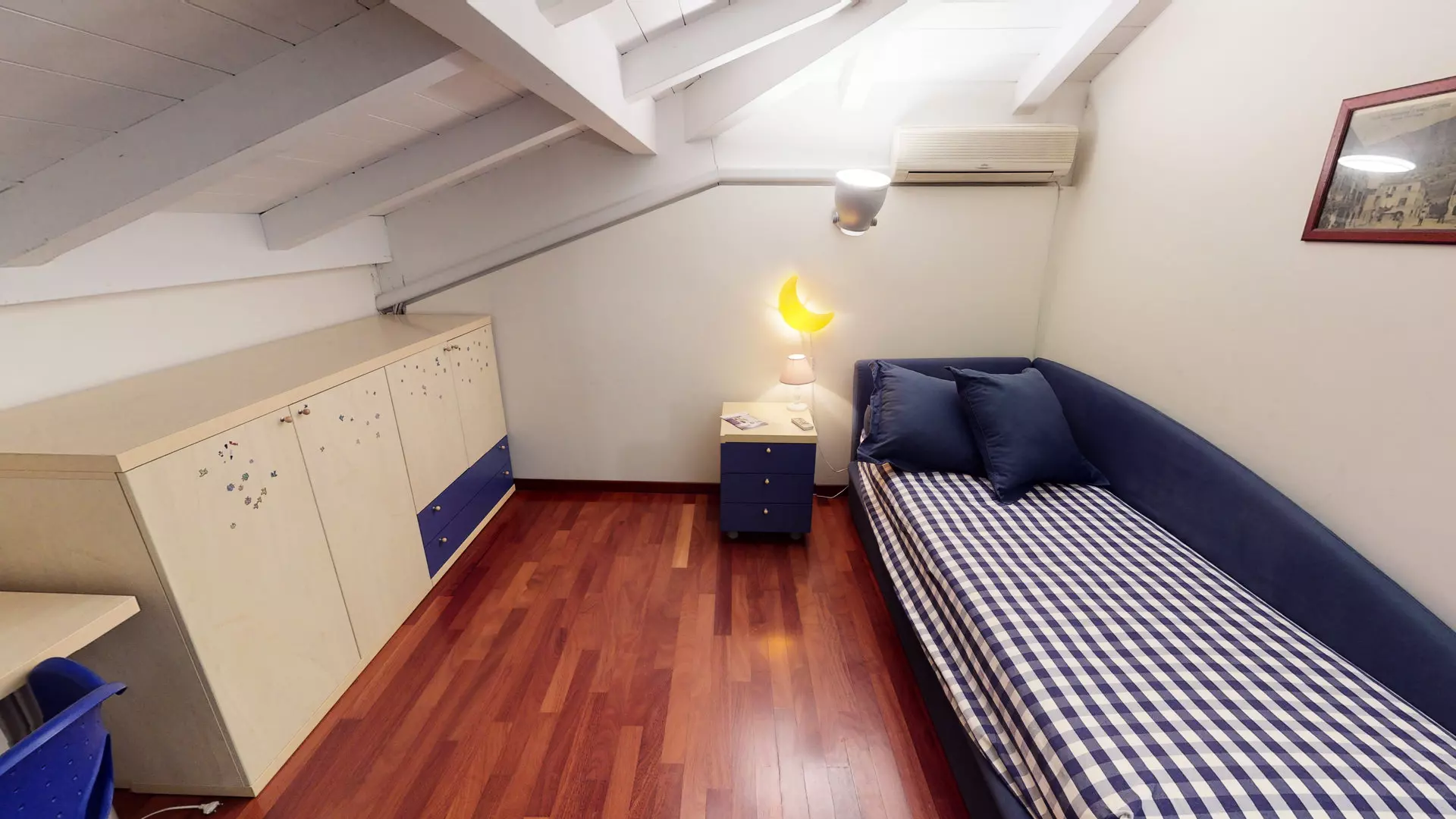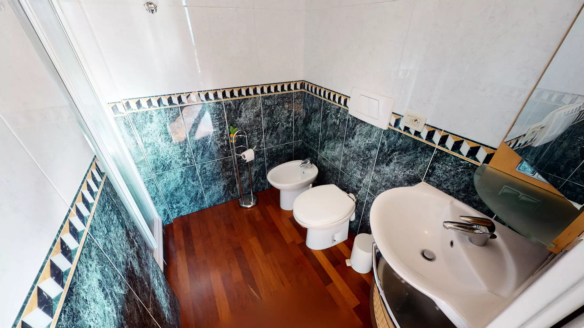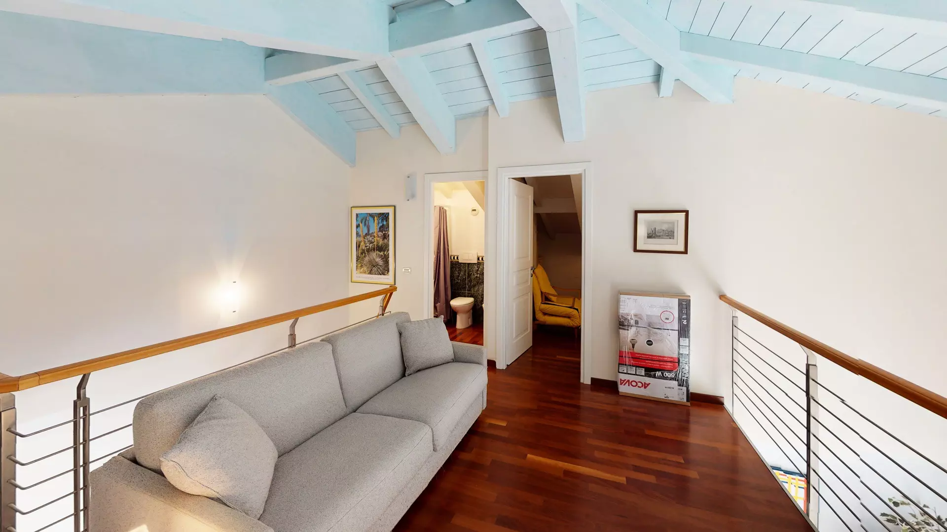 Mezzanine composée d'une grande pièce principale avec canapé lit 160x190cm, 2ème chambre avec lits gigognes 70x190cm et 2ème salle d'eau avec douche, bidet, lavabot et WC.
