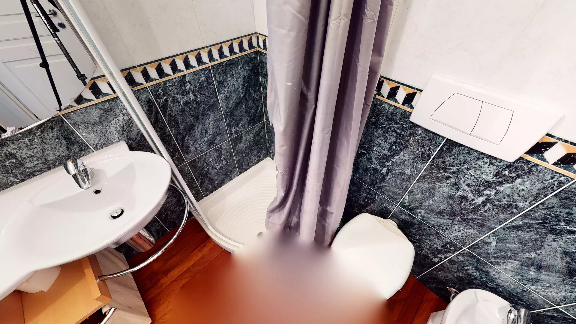 Chambre parentale avec lit 160x200cm, placards et accès direct à la Salle d'eau privative avec douche, lavabot, bidet et WC.