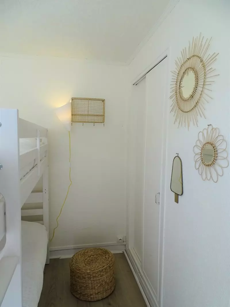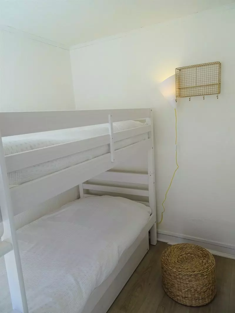 La première chambre dispose d'un lit double de 160 cm et d'un placard/penderie pour un rangement pratique. La seconde chambre, accessible soit par la première chambre soit directement par le jardin, comprend deux lits superposés de 90 cm et un lit tiroir, avec un placard/penderie pour vos effets personnels.