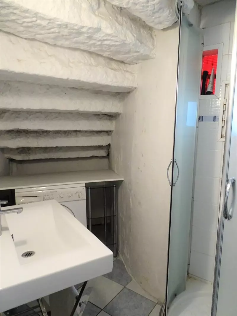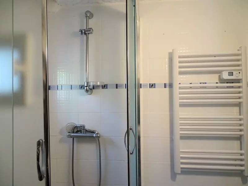 La salle d'eau, moderne et fonctionnelle, est équipée d'une douche, d'un sèche-serviettes électrique et d'un lave-linge. Les WC sont séparés pour plus de confort.