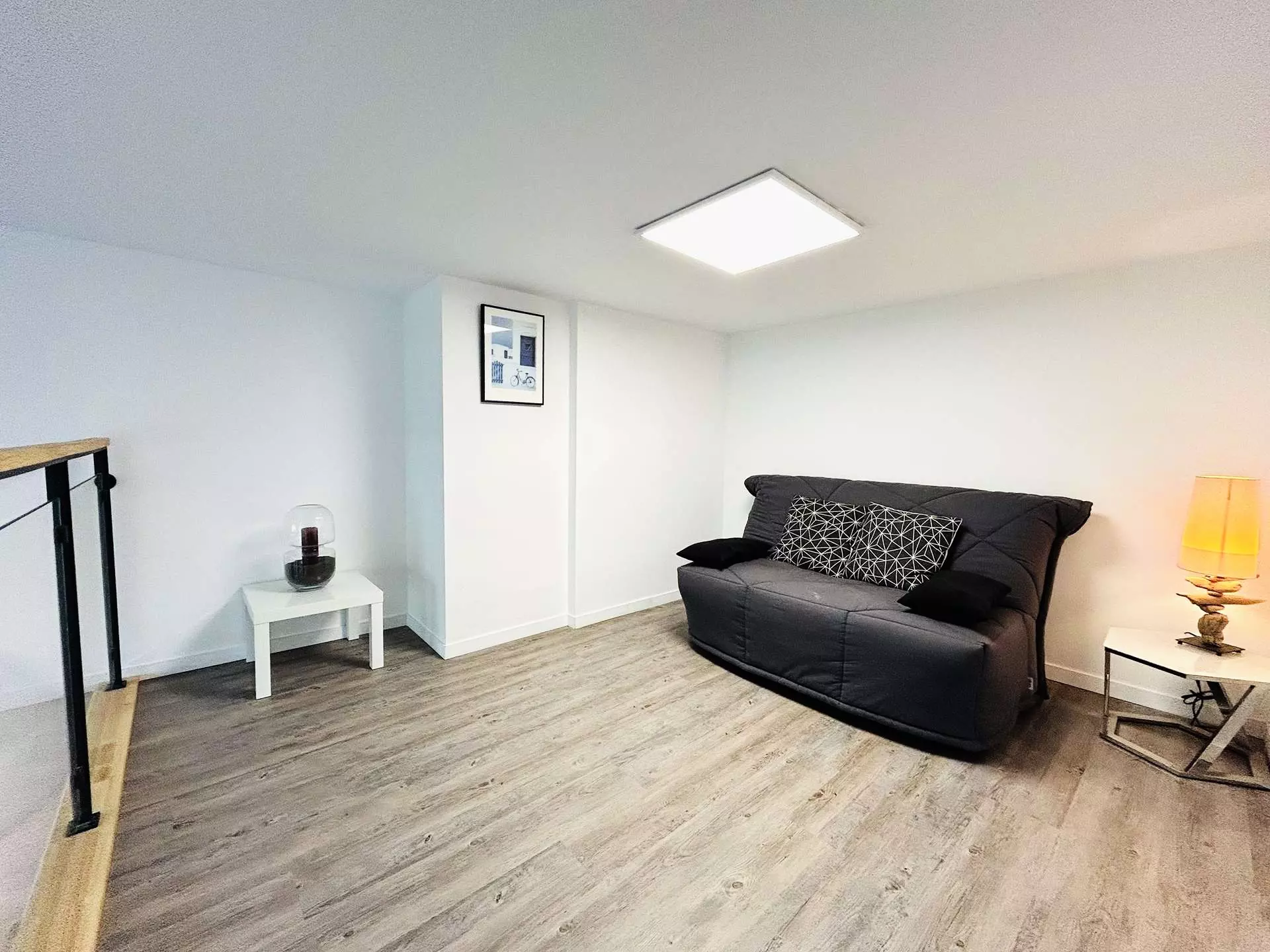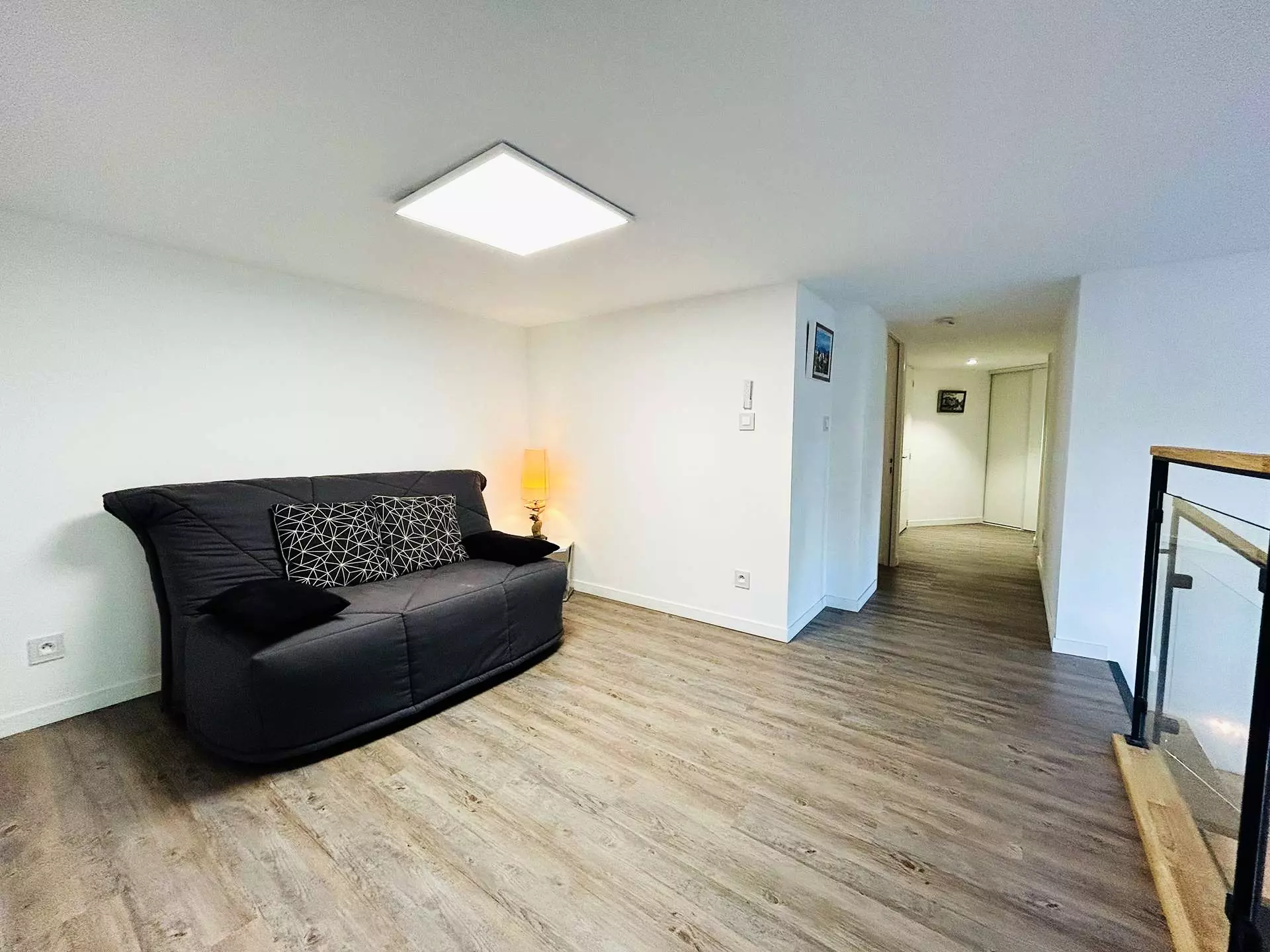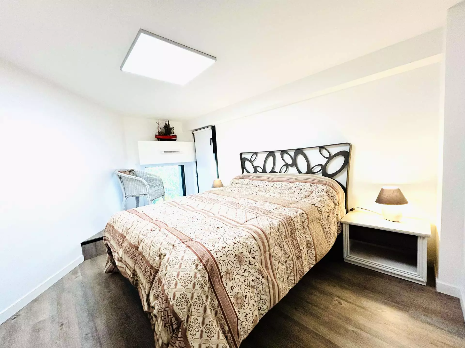 A l'étage, une mezzanine avec canapé BZ, un coin nuit séparé avec lit en 90, une chambre avec lit en 140, une salle de bains et 'un wc séparé.