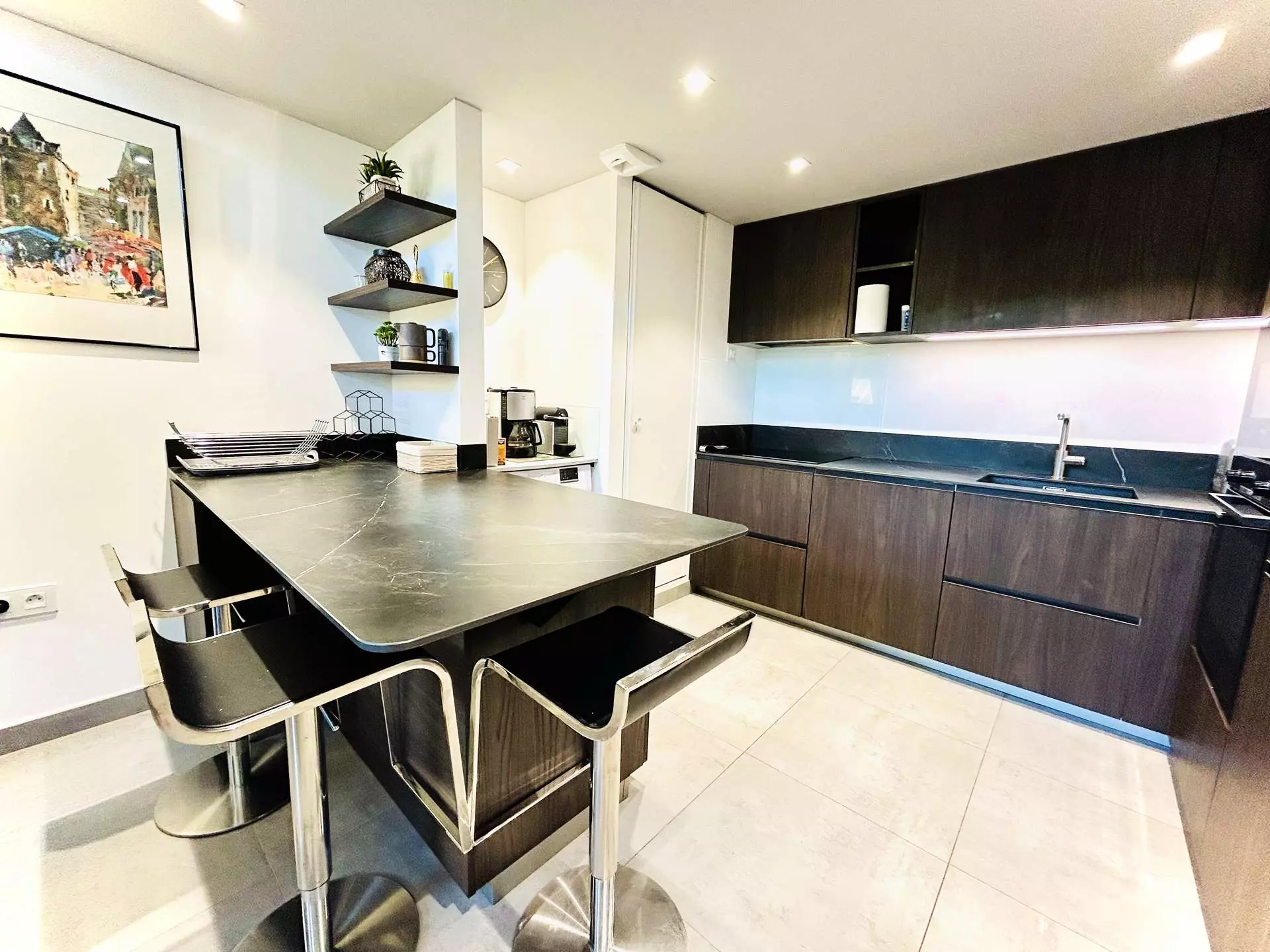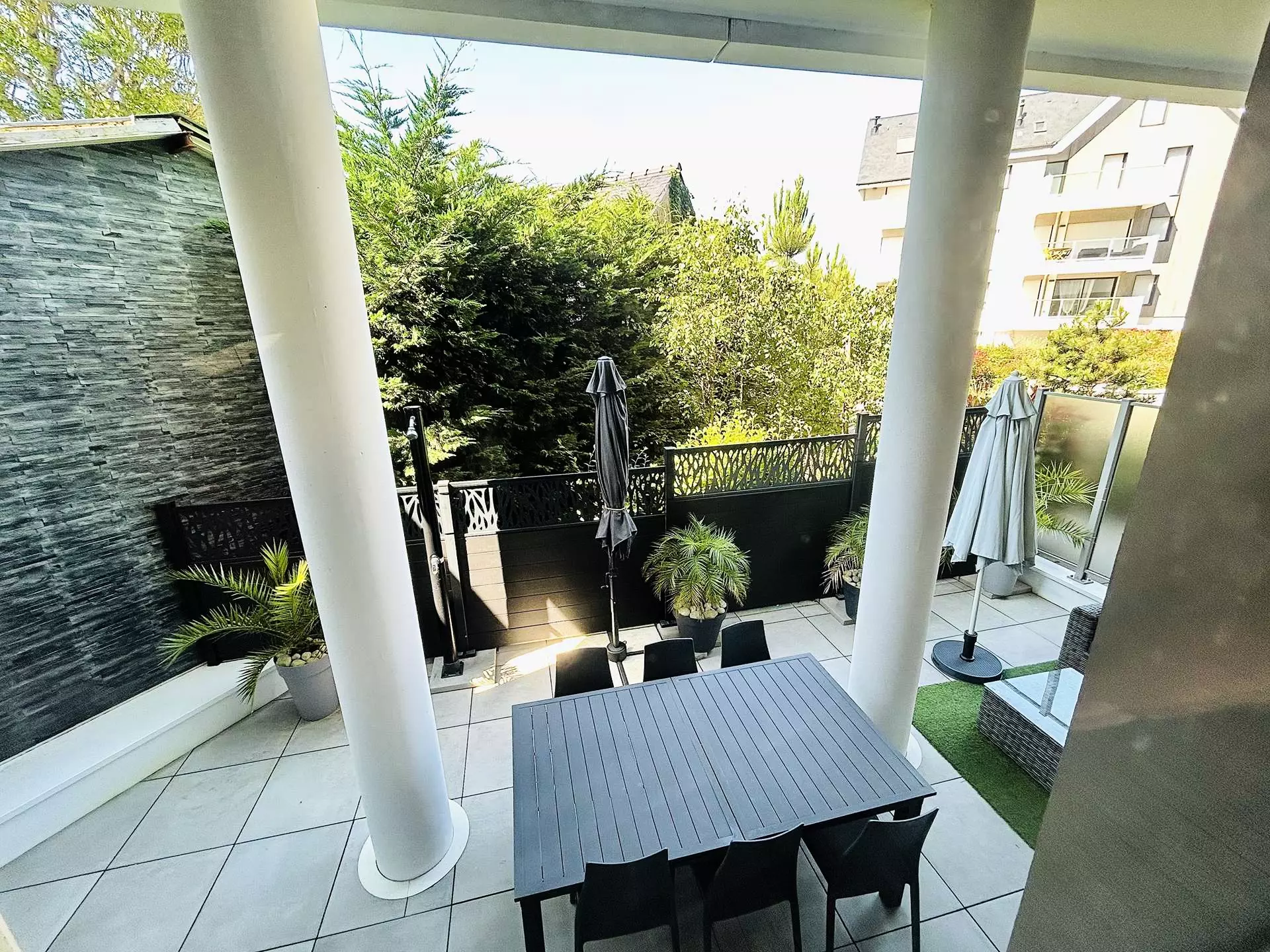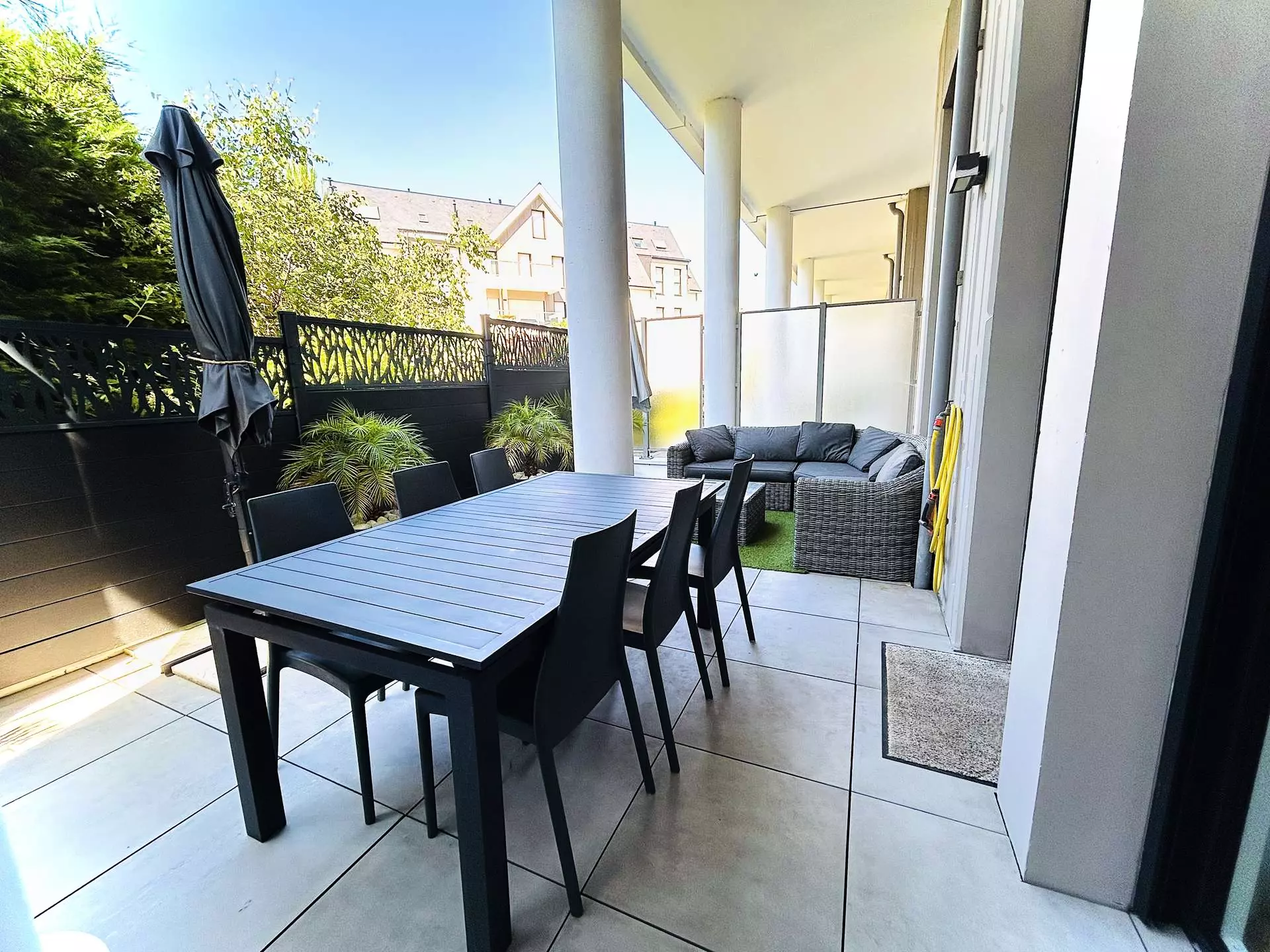 Situé en plein centre, à deux pas de la gare et de l'avenue de gaulle, cet appartement de standing se compose d'une entrée, d'une cuisine ouverte donnant sur le salon, d'une salle à manger, d'une belle terrasse aménagée sans vis à vis, d'une première chambre avec lit en 160, d'une salle d'eau, d'un wc séparé.