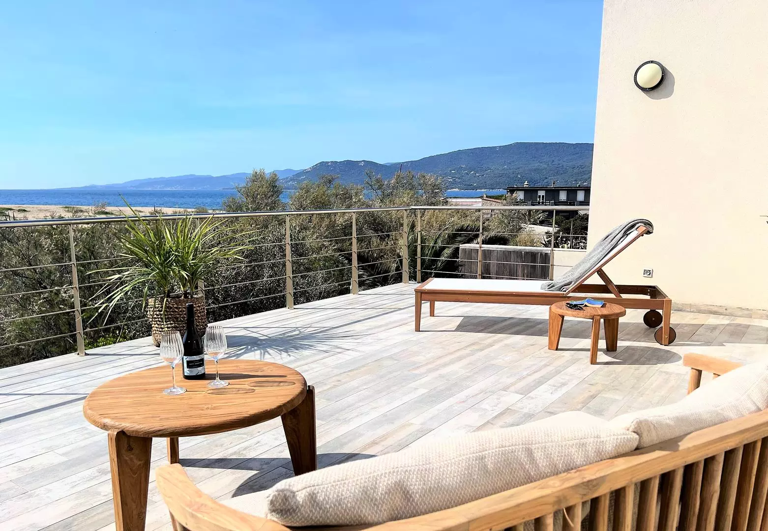 Située sur la plage de Propriano à quelques pas des paillotes, la maison de la plage se compose comme suit :