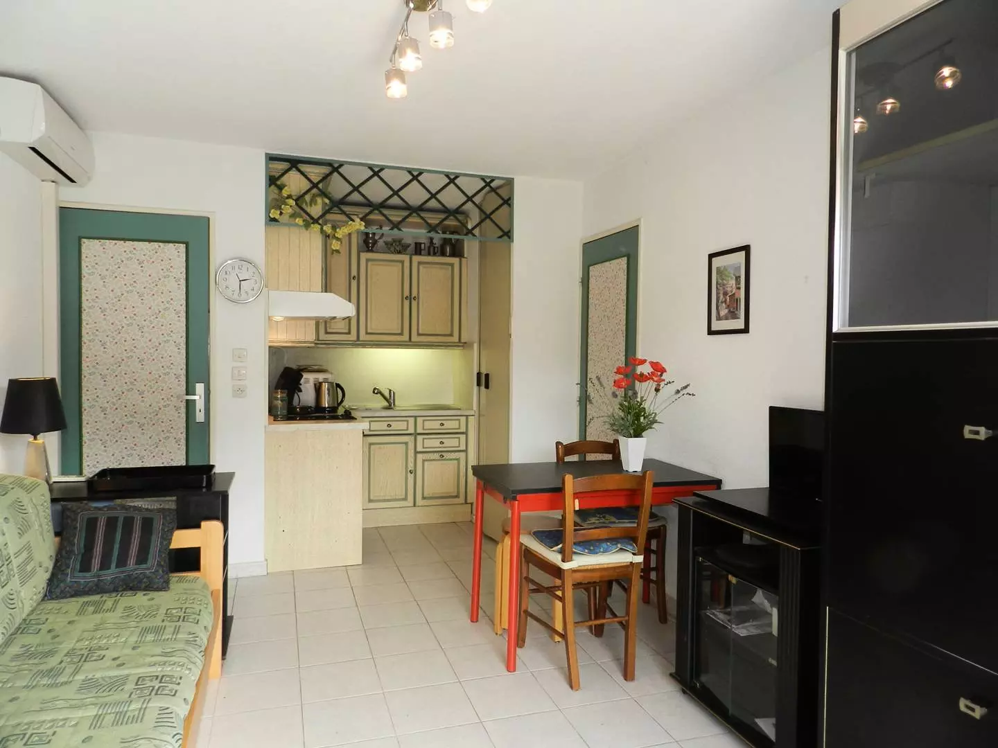 Cette location de vacances climatisé en rdc vous propose une terrasse exposée Sud-Ouest avec accès à la piscine.