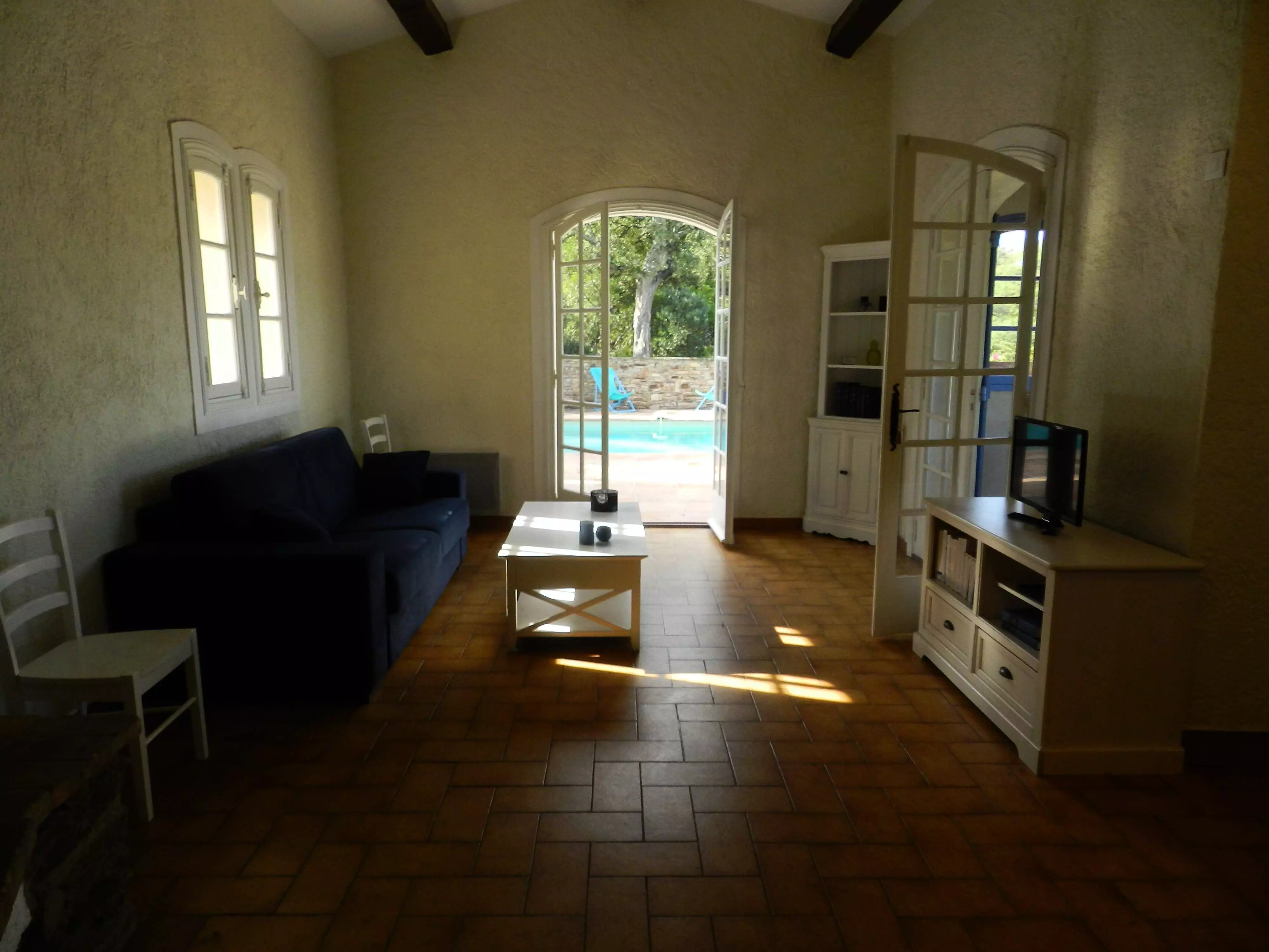 Cette maison de vacances avec piscine sur deux niveaux offre une magnifique vue sur les collines du domaine privé de Valcros.