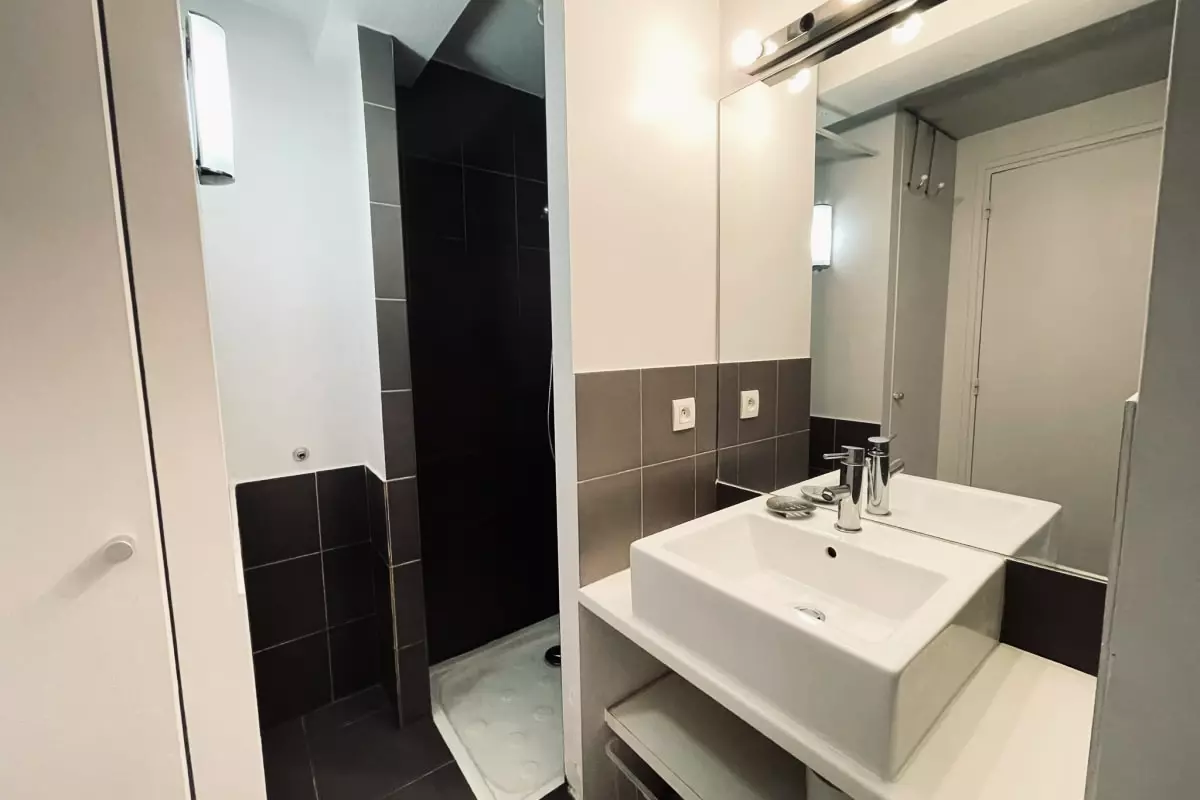 Seul appartement au 10ᵉ et dernier étage avec ascenseur, il est calme et climatisé. Il comprend :