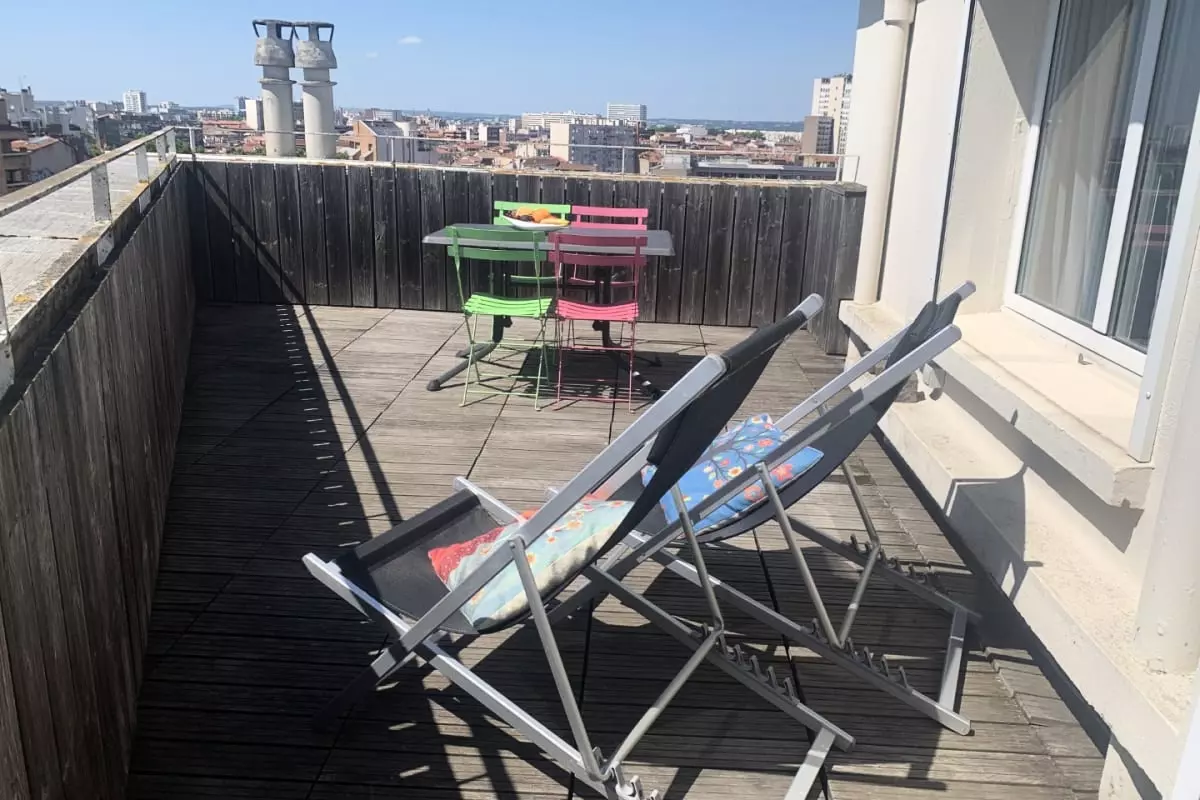 Entouré de 2 grandes terrasses EST/OUEST, Il offre une vue panoramique sur la ville.