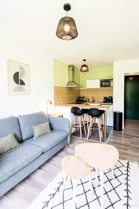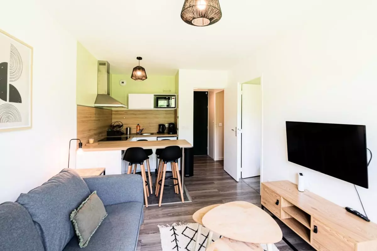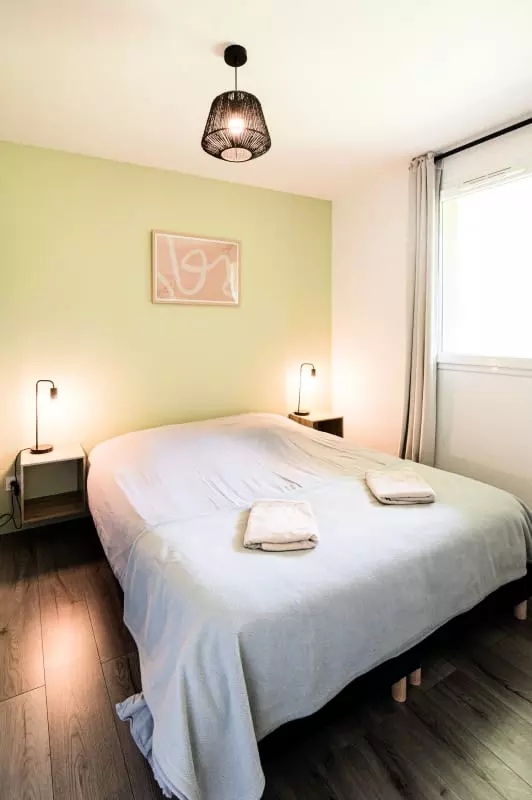 L'appartement dispose d'une chambre chaleureuse et d'un espace de vie accueillant, équipé de tout le nécessaire pour un séjour sans tracas : Wifi pour rester connecté, télévision pour des soirées relaxantes, ainsi que tout le nécessaire pour cuisiner et déguster de bons repas. La cuisine comprend un four, un micro-ondes, un lave-vaisselle, et une machine à café pour profiter de bons moments en famille ou entre amis. Vous apprécierez également la présence d'un lave-linge, d'un sèche-linge, d'un sèche-cheveux, d'un fer à repasser, et même d'un chauffe-serviette pour un confort optimal.