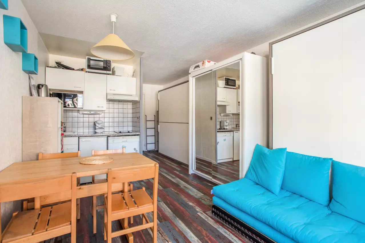 Votre location de vacances comporte : 1 séjour, 1 coin cabine, 1 cuisine, 1 salle de bain et balcon.