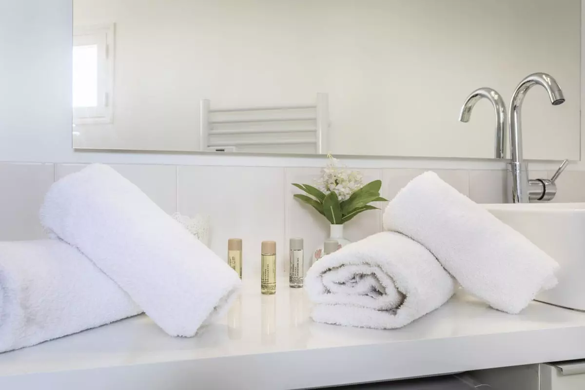 → Avant votre arrivée et après votre départ, notre équipe réalise un ménage de qualité hôtelière et met à votre disposition des serviettes de bain, du linge de lit de qualité hôtelière ainsi qu'une ligne de produits de soin naturels.