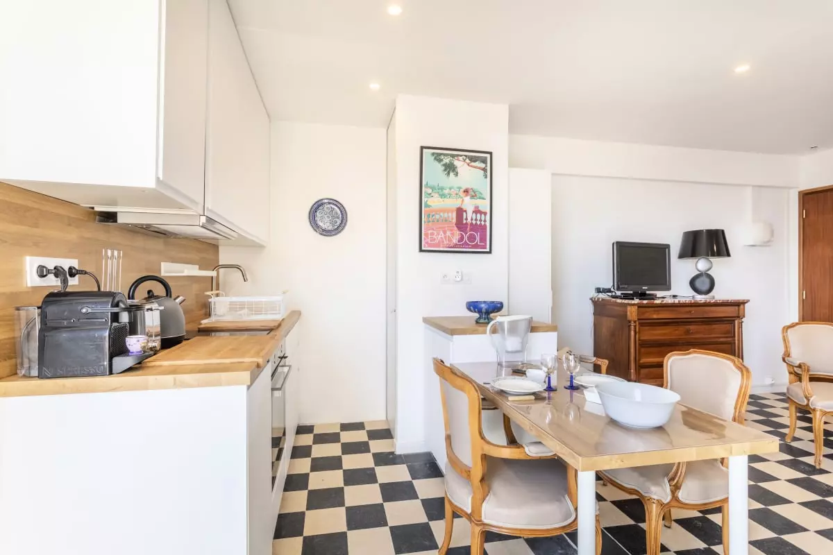 Profitez d'une parenthèse ensoleillée à deux dans ce studio lumineux, classé 3 étoiles, de 32m² à Bandol, avec vue imprenable sur la mer méditerranée.