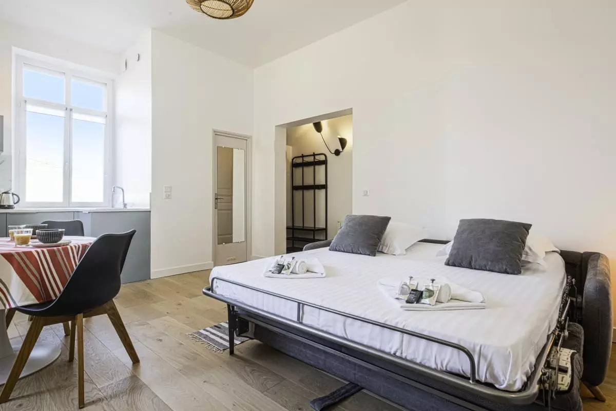 → Avant votre arrivée et après votre départ, notre équipe réalise un ménage de qualité hôtelière et met à votre disposition des serviettes de bain, du linge de lit de qualité hôtelière ainsi qu'une ligne de produits de soin naturels.