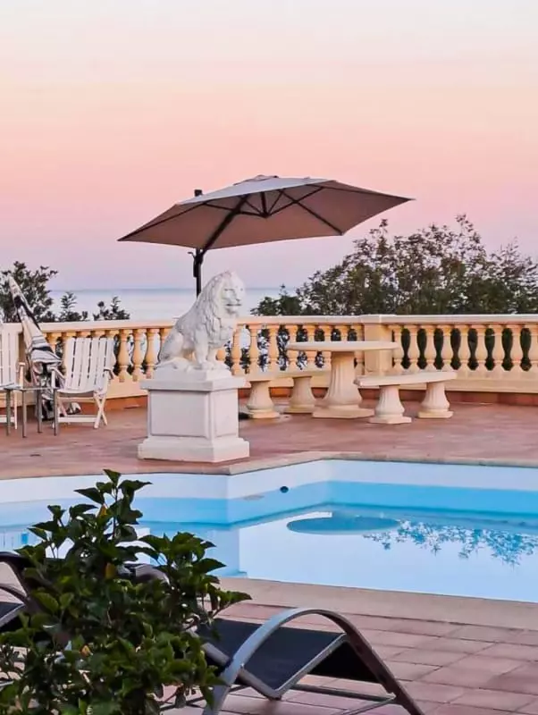 L'extérieur n'est pas en reste avec une belle cuisine d'été équipée, pour des barbecues conviviaux, entourée d'un vaste jardin paysager de 2000 m2 sans vis à vis et au calme ainsi qu'une grande terrasse avec piscine avec vue plongeante sur la mer, privative et sécurisé pour les enfants, bordée de chaises longues promet détente et baignades rafraîchissantes sous le soleil de la Côte d'Azur.