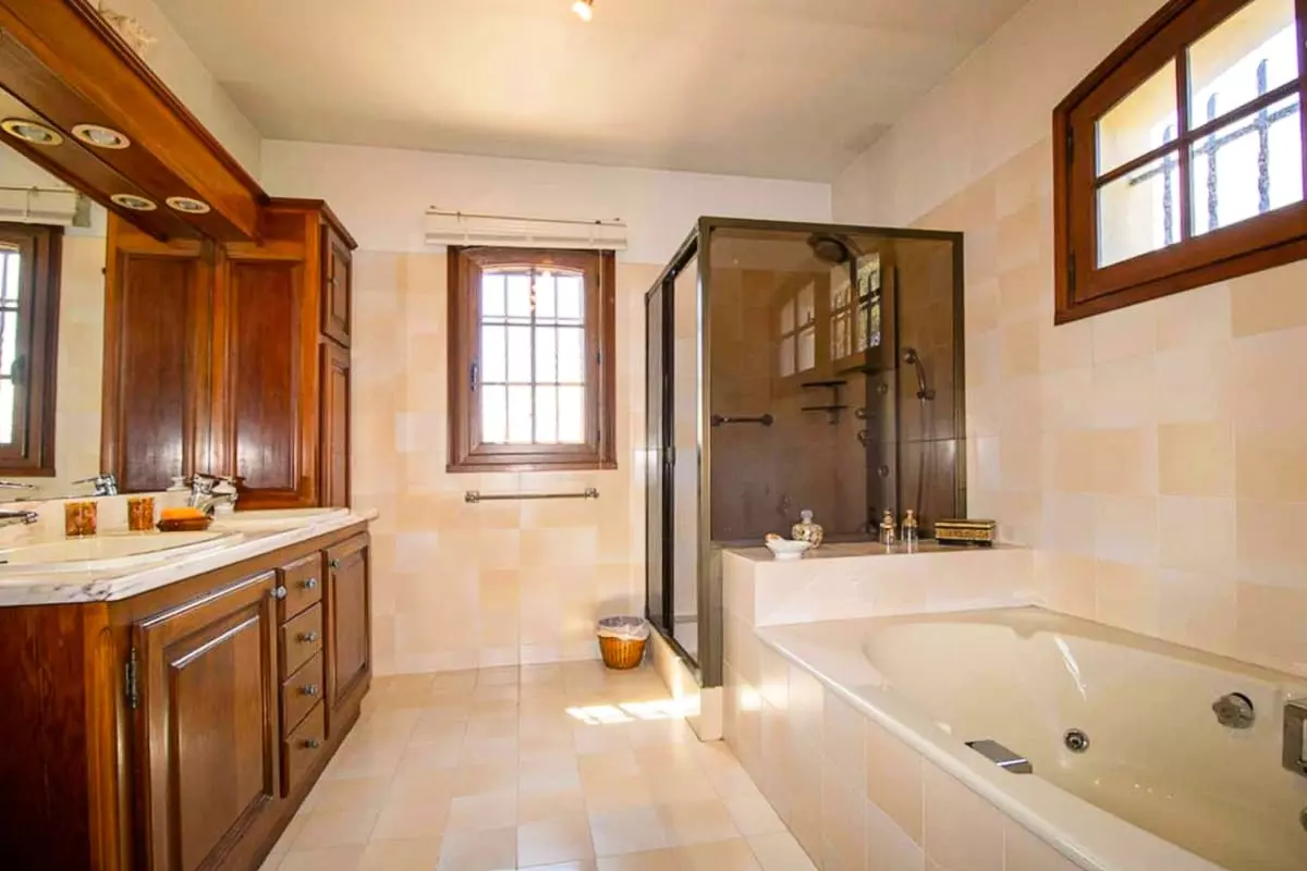 Découvrez 5 chambres ( 3 lits King size , 1 lit 160cm et 1 lit 140cm ) chacune aménagée pour assurer votre confort et votre intimité ainsi que 2 salles de bains.