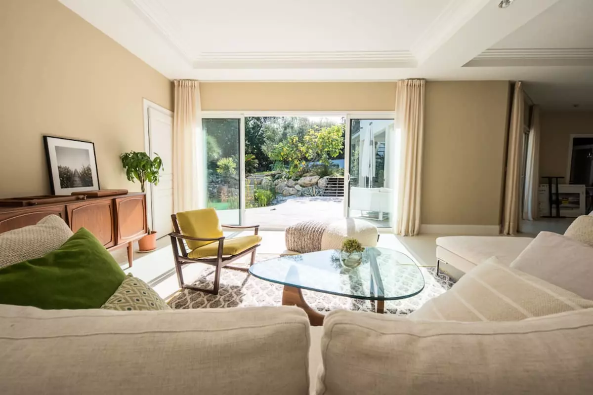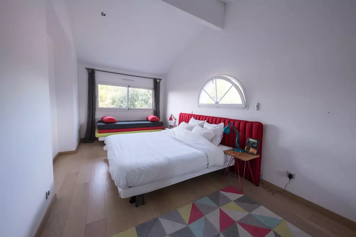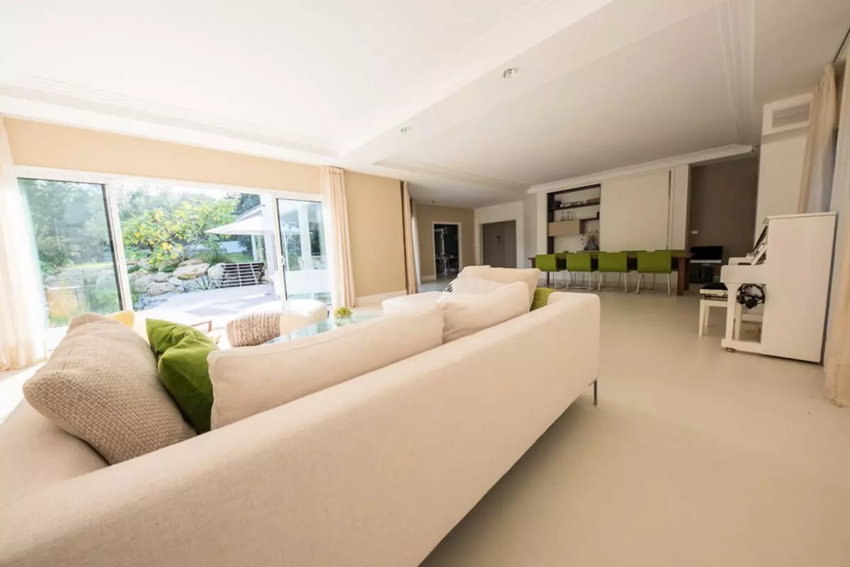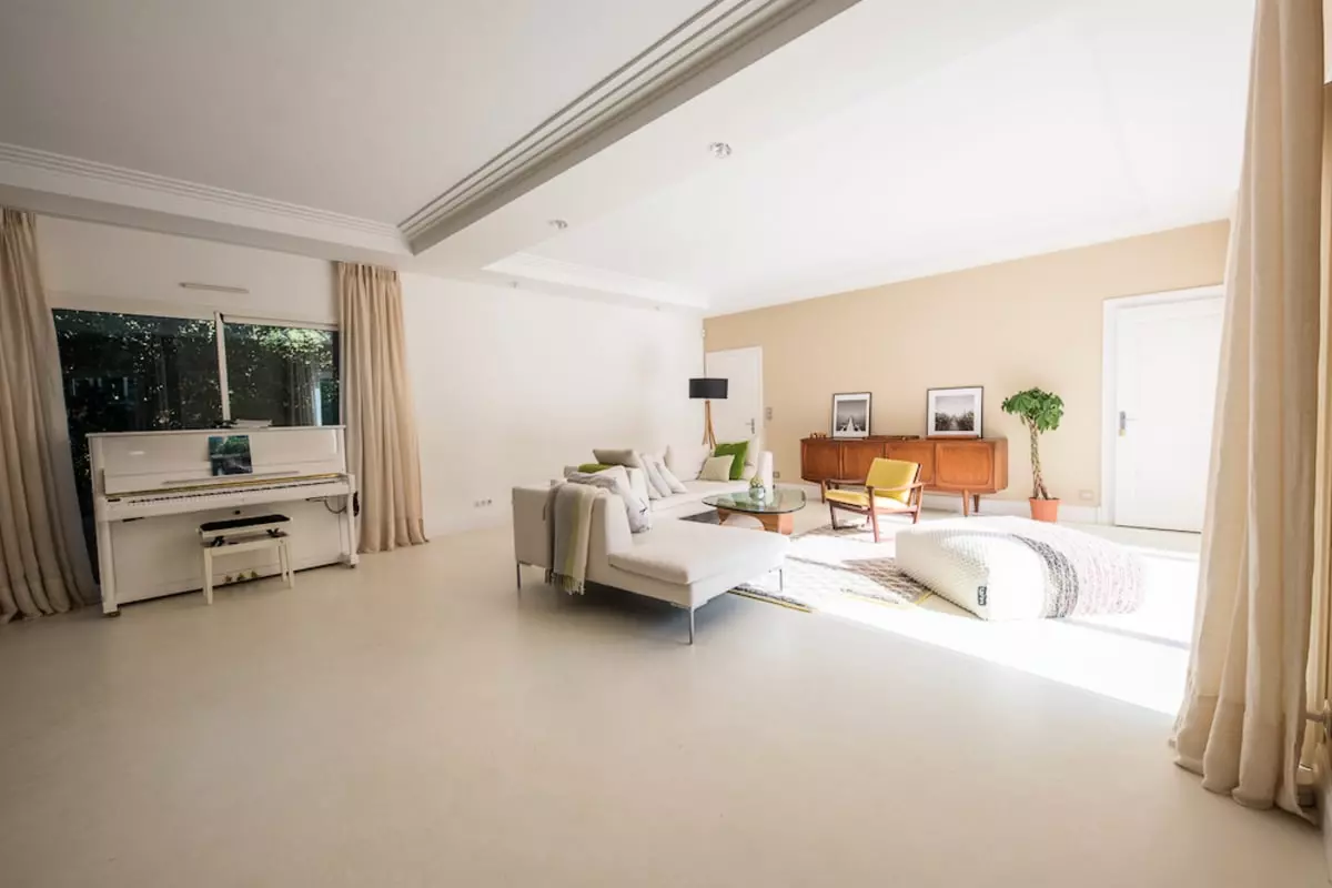 Les grandes baies vitrées du rez-de-chaussée, comme celles de l'étage supérieur, permettent à la lumière de pénétrer librement dans le salon spacieux, la salle de cinéma maison et les chambres. Il y a quatre chambres pouvant accueillir jusqu'à 10 personnes avec des enfants. Deux chambres sont ensuite, plus deux salles de bains séparées. Il y a plus qu'assez d'espace pour que toute la famille ou deux familles distinctes se sentent à l'aise! La grande salle de cinéma attenante peut également être utilisée comme dortoir pour enfants et est idéale et conviviale pour les familles.