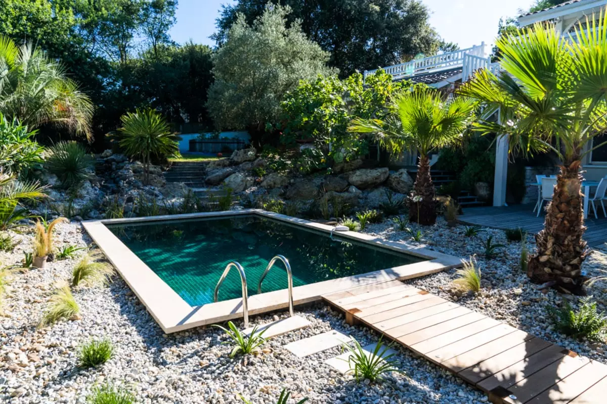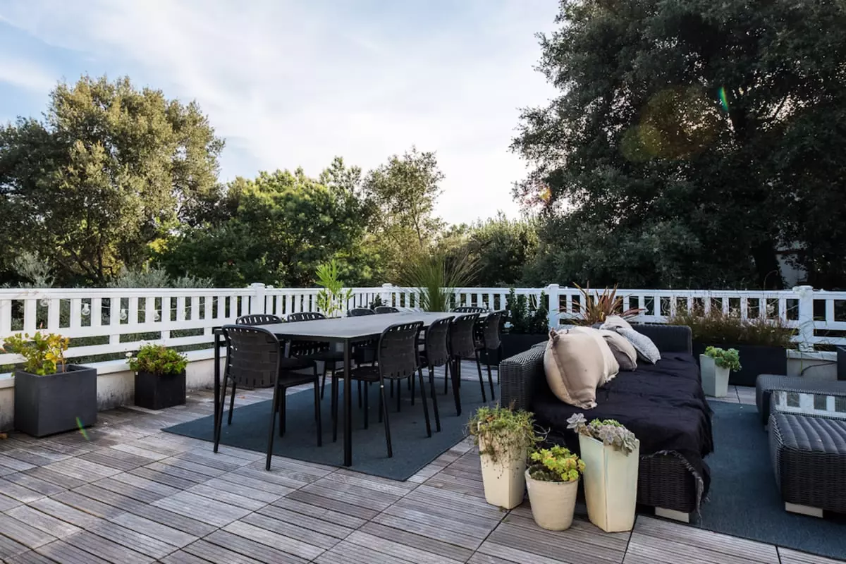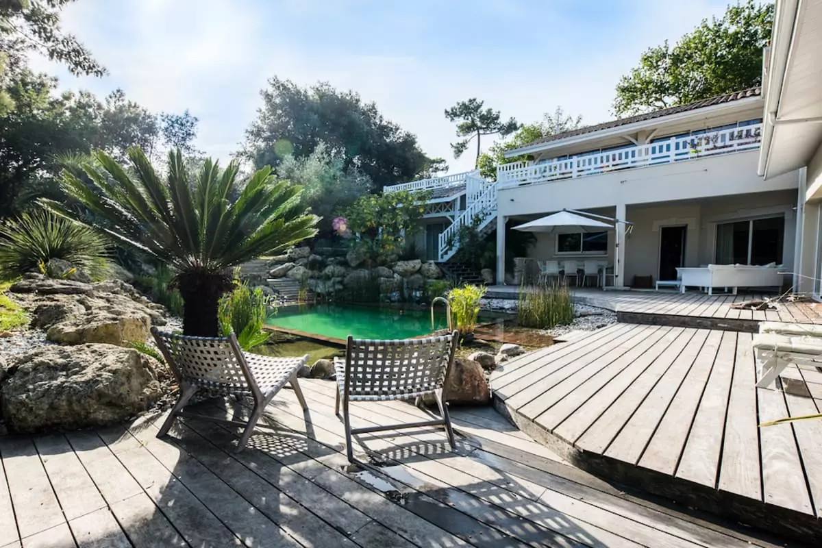 Véritable lieu de vacances, la propriété est spécialement conçue pour que les clients profitent au maximum du soleil de la côte atlantique: une terrasse ensoleillée sur le toit avec coin repas et vue sur les pinèdes, un beau jardin arboré avec table pour les repas en plein air, plancha, table de tennis de table plus un bassin de baignade naturel pour profiter d'un plongeon rapide et rafraîchissant!
