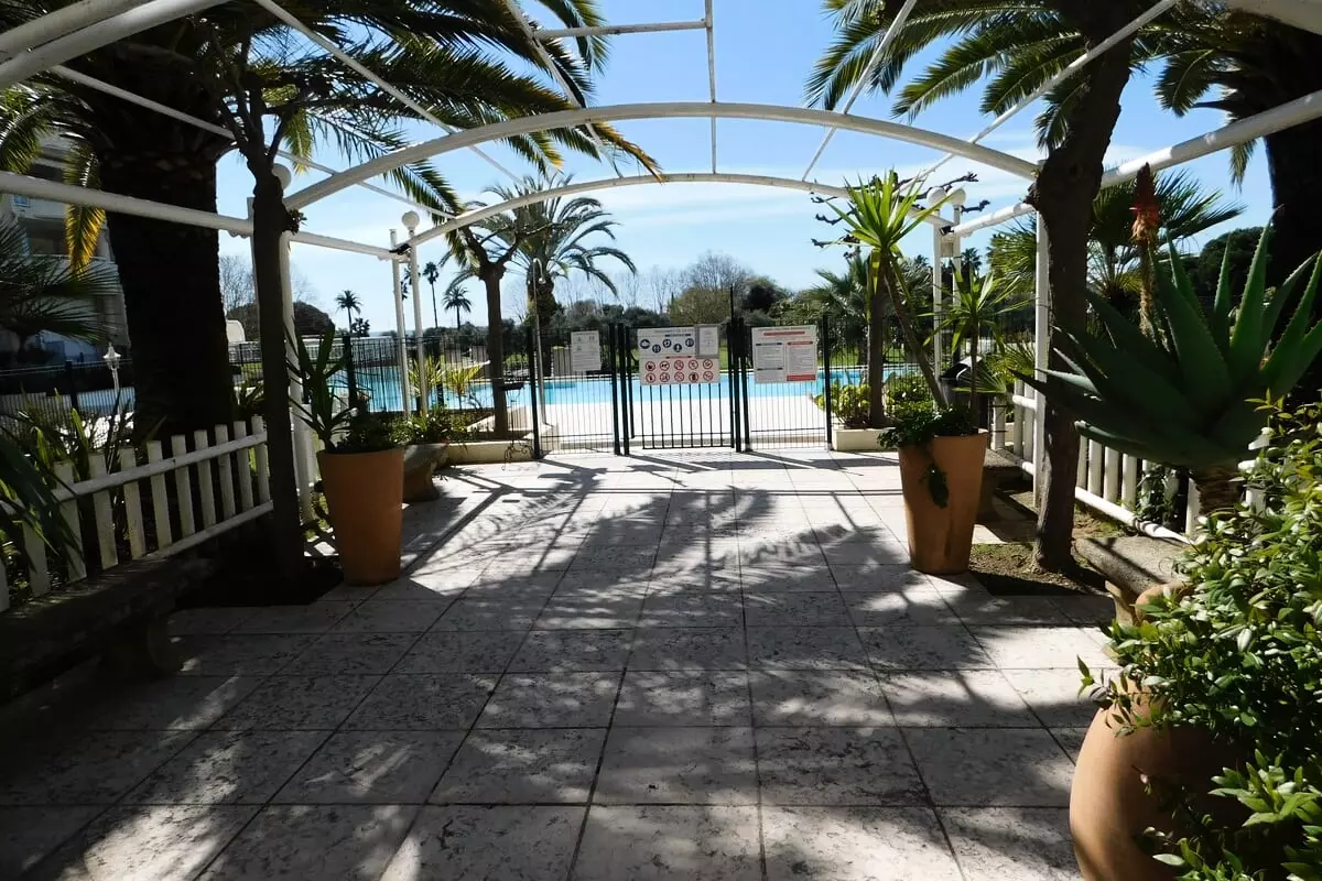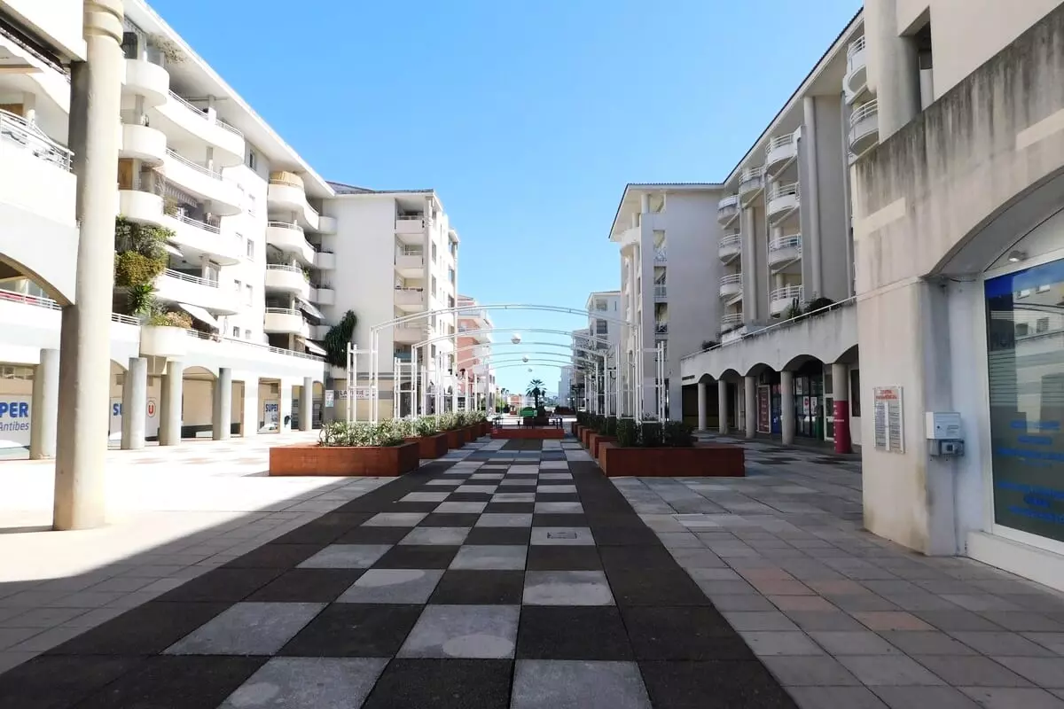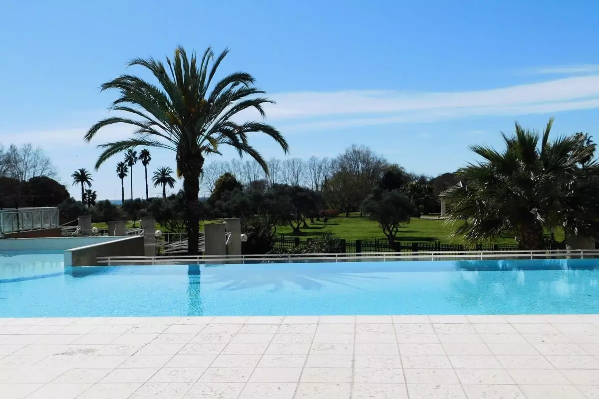 Au 3e étage d'une résidence de haut standing sécurisée en front de mer, à 5 mn à pied des plages de sable fin (accès direct). L'appartement climatisé ne fait face à aucune route passante et est très au calme. La résidence est avec gardien, l'entrée est sécurisée avec badge d'accès. Vous profiterez d'une grande et belle piscine à débordement avec petit bain pour enfants et pataugeoire pour les plus petits. Vous bénéficerez également d'un emplacement pour une voiture dans le parking privé et sécurisé au sous-sol de la résidence, avec accès direct à l'étage de l'appartement par deux ascenseurs. Ce beau logement de type 2, très lumineux est tout équipé pour des vacances tout confort. Il est à 100 mètres des plages de sable fin. (accès direct) Grande terrasse de 15 m² avec une magnifique vue sur la mer, vue sur le parc Exflora (jardin public de 5 hectares) et la piscine de la résidence. Le salon avec sa cuisine américaine est équipé d'un canapé lit (lit double), télévision. La cuisine est équipé avec plaque à 2 foyers et hotte aspirante, réfrigérateur avec petit congélateur, four micro-ondes, vaisselles et Machine à laver le linge. La salle de bain dispose d'une baignoire avec douche, un wc indépendant récemment rénové. La chambre est aménagée avec un lit double, de grands placards muraux avec penderie et donne aussi sur la terrasse par baie vitrée. La Résidence se situe dans une large zone piétonne avec de nombreux commerces : supermarché Super U, brasseries, bar, restaurants, presse et tabac et cabinet médical. Les allées de la zone piétonne autour sont gardiennées la nuit. Les allées piétonnes donnent accès au Parc Exflora (jardin exotique , palmeraie entre autres offrant sérénité et calme). Accès direct aux plages par un chemin piéton le long du parc, sans avoir à traverser de route. Centre Juan Les Pins à 1,4 km. Croisette de Cannes à 6 km. Nice à 25 min, Il est Interdit de fumer. Les Animaux interdits L'appartement bénéficie du wifi gratuit Un parging privé et sécurisé sera à votre disposition pendant votre séjour Informations complémentaires Centre Juan Les Pins à 1,1 km. Croisette de Cannes à 6 km. Nice à 25 min, Arrêt de bus juste devant la résidence: lignes pour Antibes, Nice (aéroport de Nice) ou Cannes. L'emplacement est idéal pour rayonner dans la région.