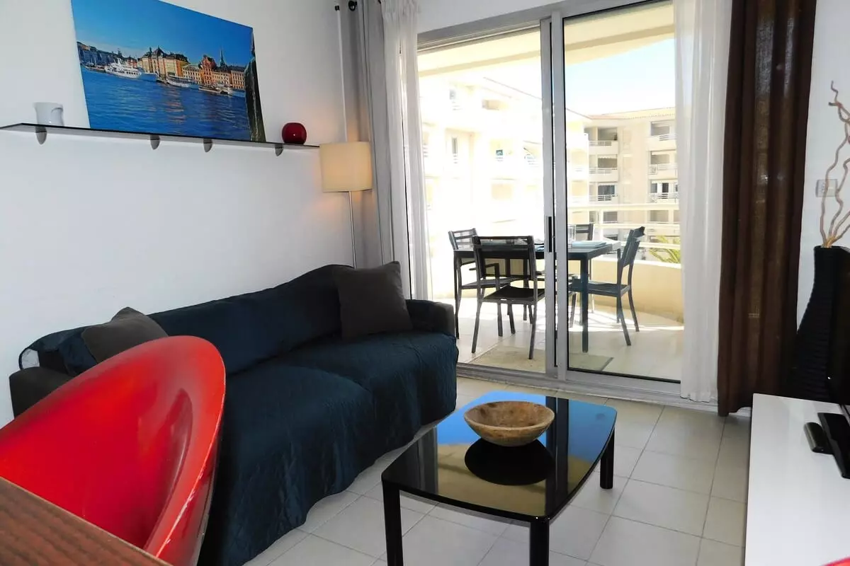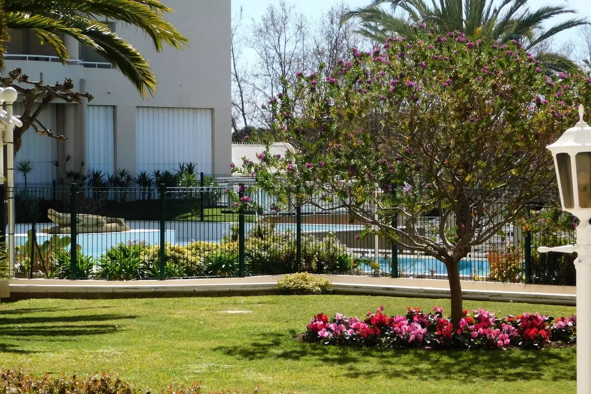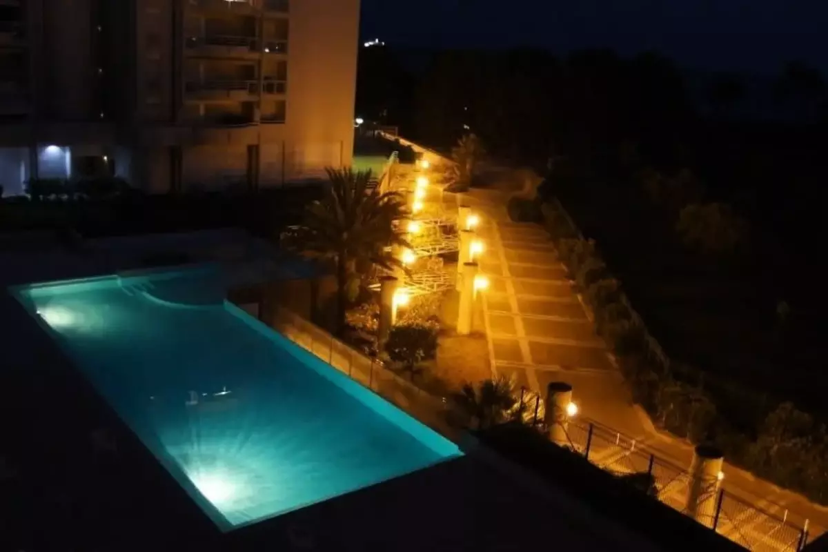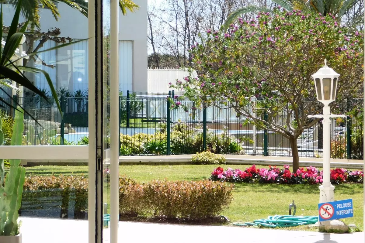 Au 3e étage d'une résidence de haut standing sécurisée en front de mer, à 5 mn à pied des plages de sable fin (accès direct). L'appartement climatisé ne fait face à aucune route passante et est très au calme. La résidence est avec gardien, l'entrée est sécurisée avec badge d'accès. Vous profiterez d'une grande et belle piscine à débordement avec petit bain pour enfants et pataugeoire pour les plus petits. Vous bénéficerez également d'un emplacement pour une voiture dans le parking privé et sécurisé au sous-sol de la résidence, avec accès direct à l'étage de l'appartement par deux ascenseurs. Ce beau logement de type 2, très lumineux est tout équipé pour des vacances tout confort. Il est à 100 mètres des plages de sable fin. (accès direct) Grande terrasse de 15 m² avec une magnifique vue sur la mer, vue sur le parc Exflora (jardin public de 5 hectares) et la piscine de la résidence. Le salon avec sa cuisine américaine est équipé d'un canapé lit (lit double), télévision. La cuisine est équipé avec plaque à 2 foyers et hotte aspirante, réfrigérateur avec petit congélateur, four micro-ondes, vaisselles et Machine à laver le linge. La salle de bain dispose d'une baignoire avec douche, un wc indépendant récemment rénové. La chambre est aménagée avec un lit double, de grands placards muraux avec penderie et donne aussi sur la terrasse par baie vitrée. La Résidence se situe dans une large zone piétonne avec de nombreux commerces : supermarché Super U, brasseries, bar, restaurants, presse et tabac et cabinet médical. Les allées de la zone piétonne autour sont gardiennées la nuit. Les allées piétonnes donnent accès au Parc Exflora (jardin exotique , palmeraie entre autres offrant sérénité et calme). Accès direct aux plages par un chemin piéton le long du parc, sans avoir à traverser de route. Centre Juan Les Pins à 1,4 km. Croisette de Cannes à 6 km. Nice à 25 min, Il est Interdit de fumer. Les Animaux interdits L'appartement bénéficie du wifi gratuit Un parging privé et sécurisé sera à votre disposition pendant votre séjour Informations complémentaires Centre Juan Les Pins à 1,1 km. Croisette de Cannes à 6 km. Nice à 25 min, Arrêt de bus juste devant la résidence: lignes pour Antibes, Nice (aéroport de Nice) ou Cannes. L'emplacement est idéal pour rayonner dans la région.
