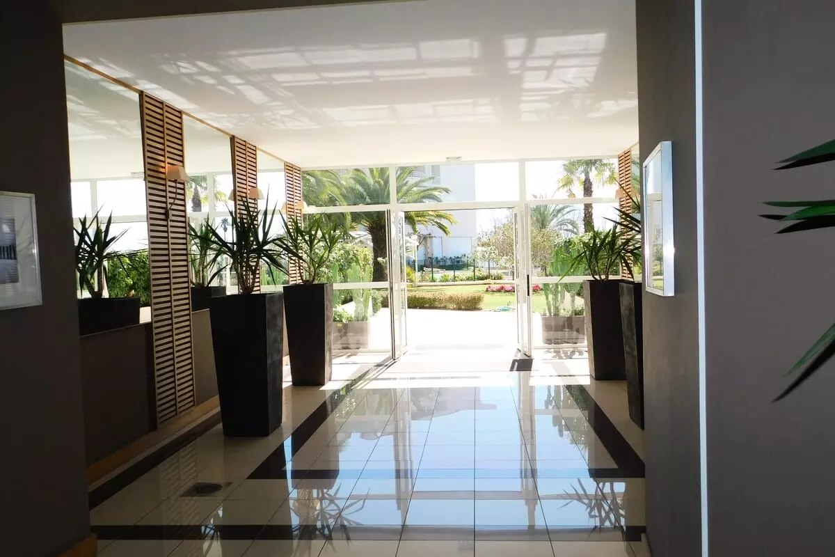 Au 3e étage d'une résidence de haut standing sécurisée en front de mer, à 5 mn à pied des plages de sable fin (accès direct).