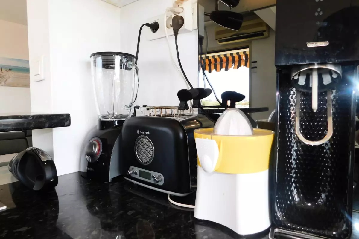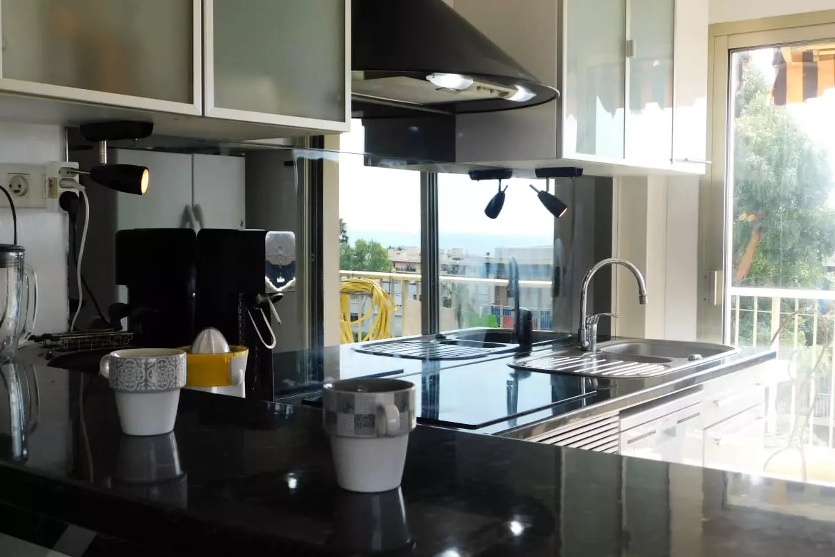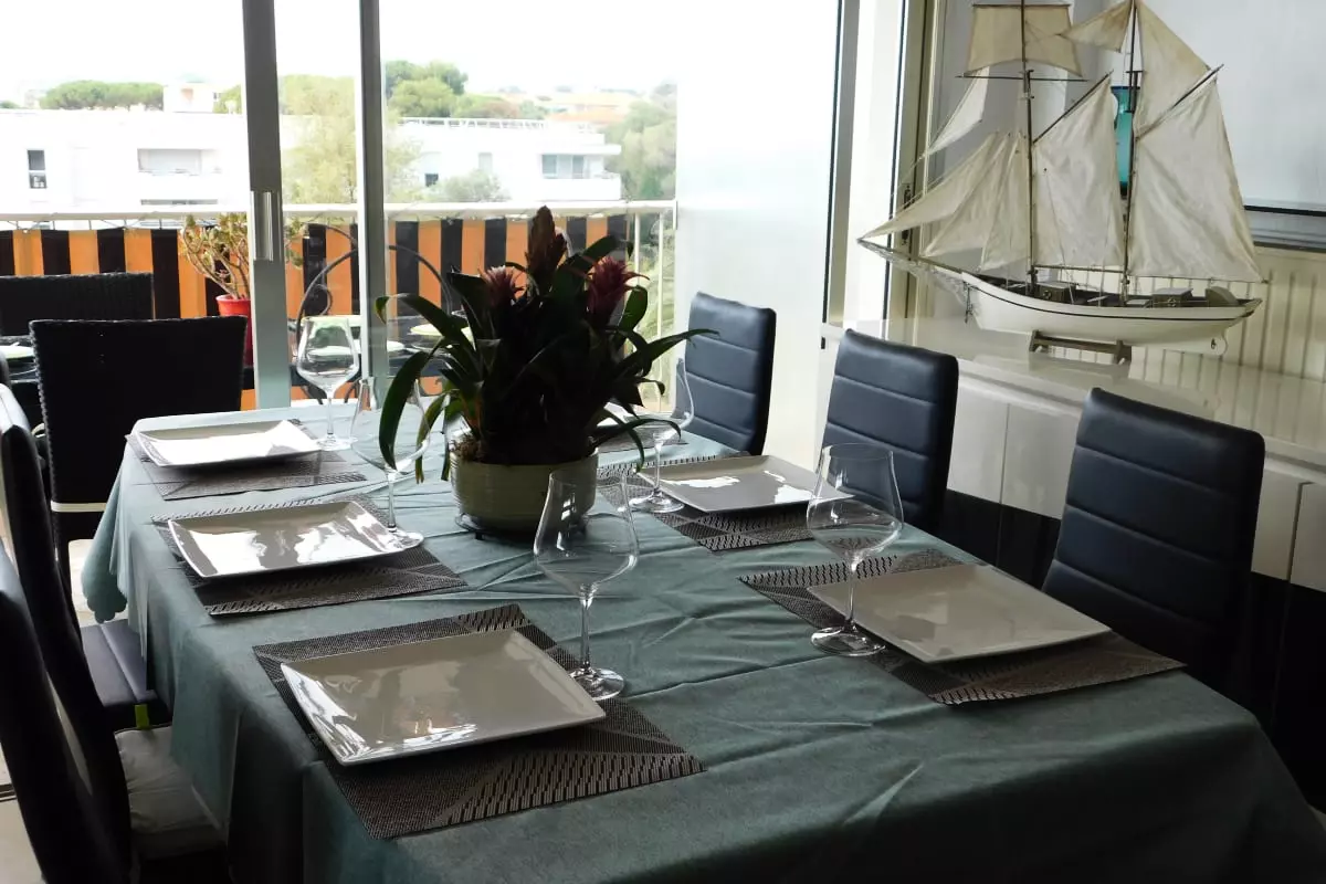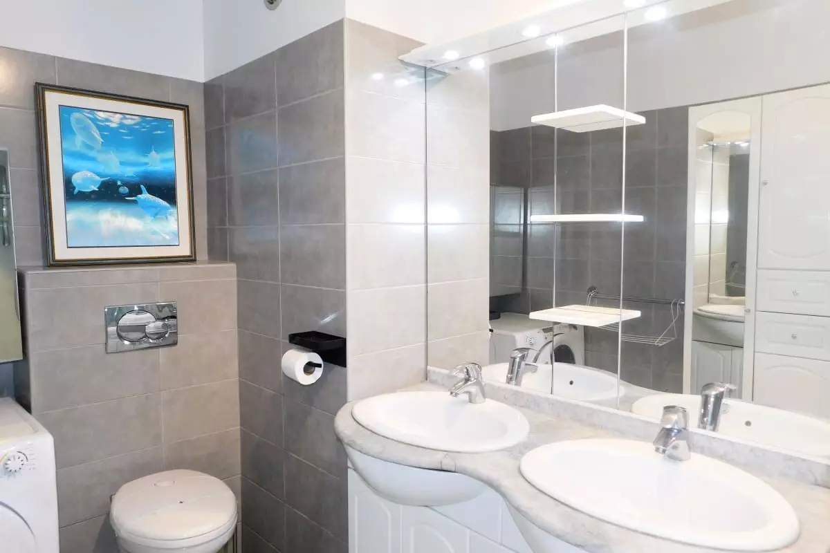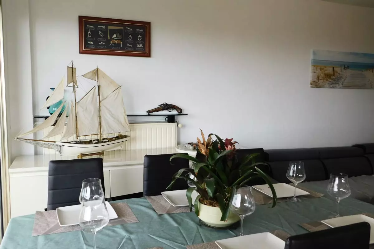 Le salon est doté d'une cuisine ouverte équipée, où vous pourrez préparer de délicieux repas en famille ou entre amis. Profitez des deux balcons offrant une vue imprenable sur la mer Méditerranée. L'un des balcons est idéal pour se détendre en sirotant un café, tandis que l'autre est aménagé pour les repas en plein air, où vous pourrez déguster vos mets tout en admirant le panorama.