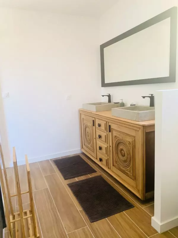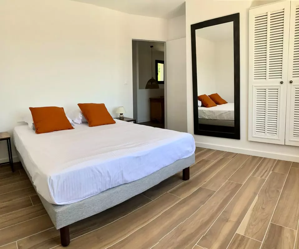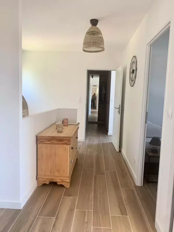 A l'étage, une suite parentale avec salle de bain (douche à l'italienne) et grand dressing ainsi que deux autres chambres spacieuses et confortables avec une agréable vue.