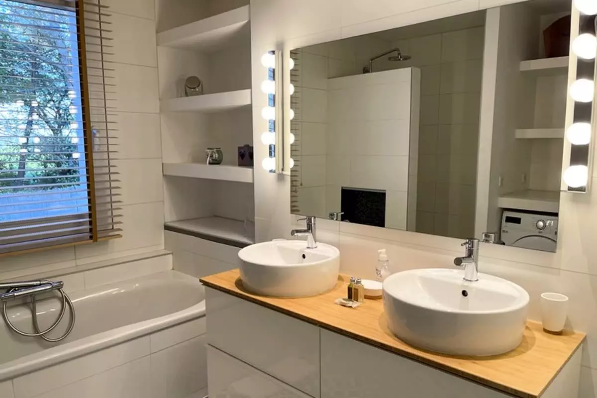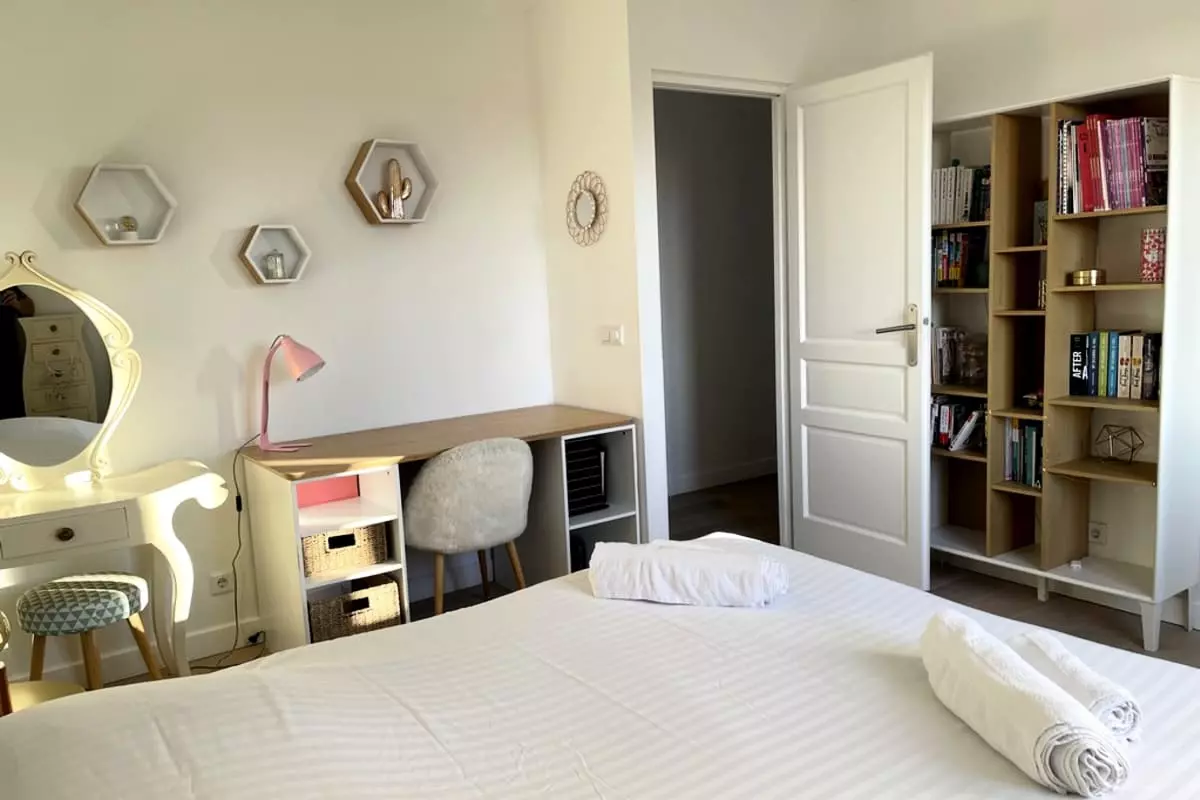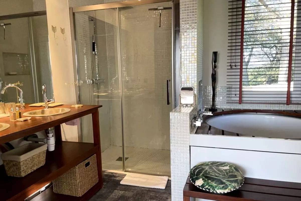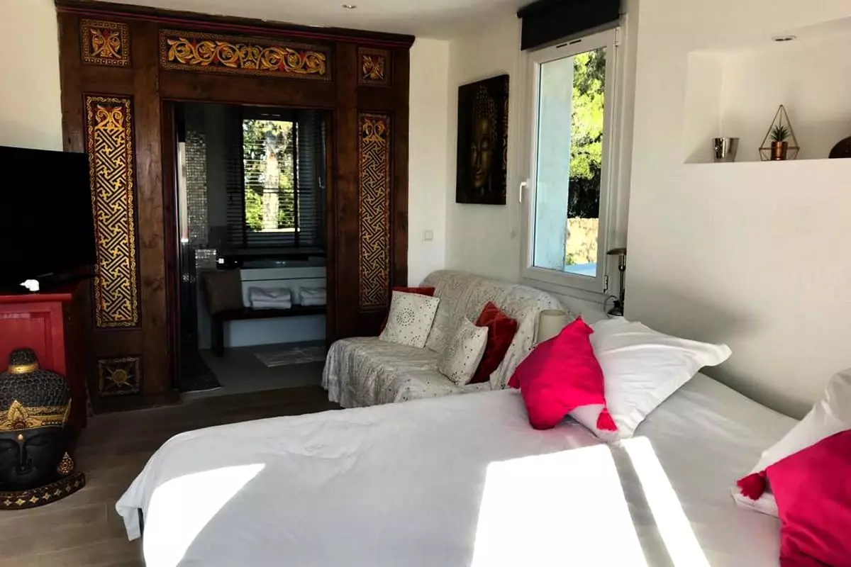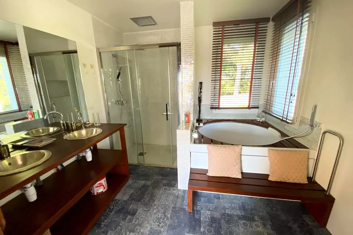 * Chambre 2 : lit de 180 avec salle de bain privative (douche et baignoire)