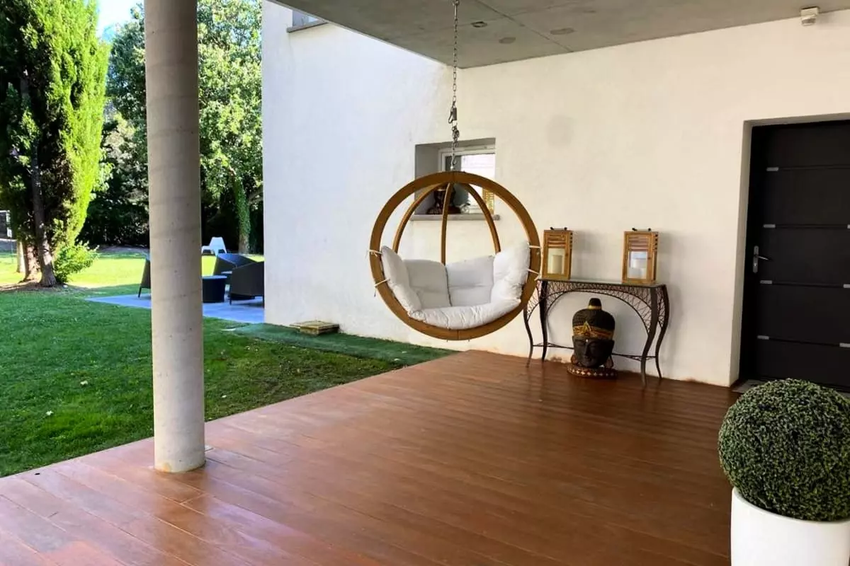* Grande terrasse ombragée avec table pour 10 personnes, salon de jardin confortable