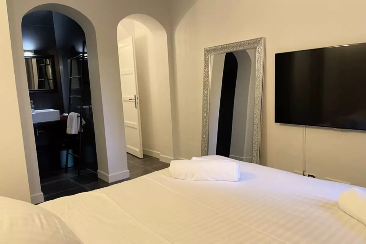 * Chambre 1 : lit de 160 avec salle de bains privative - douche