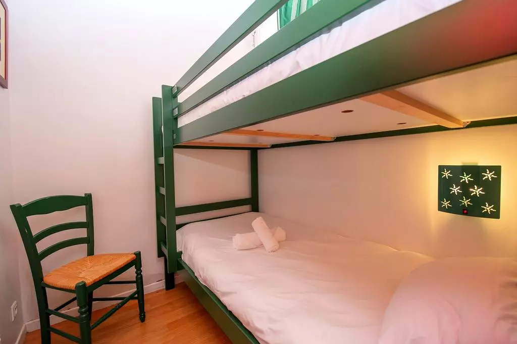Chambre avec 2 lits simples et chambre avec 2 lits superposés.