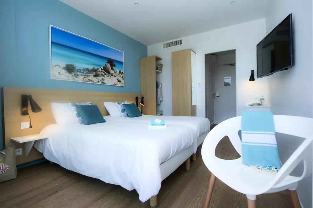 Lit double ou 2 lits simples et 2 lits superposés.