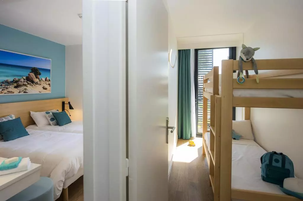 Chambre avec 2 lits simples et chambre avec 2 lits superposés + lit simple.